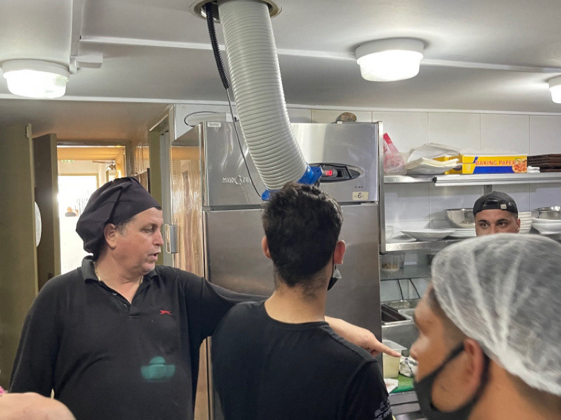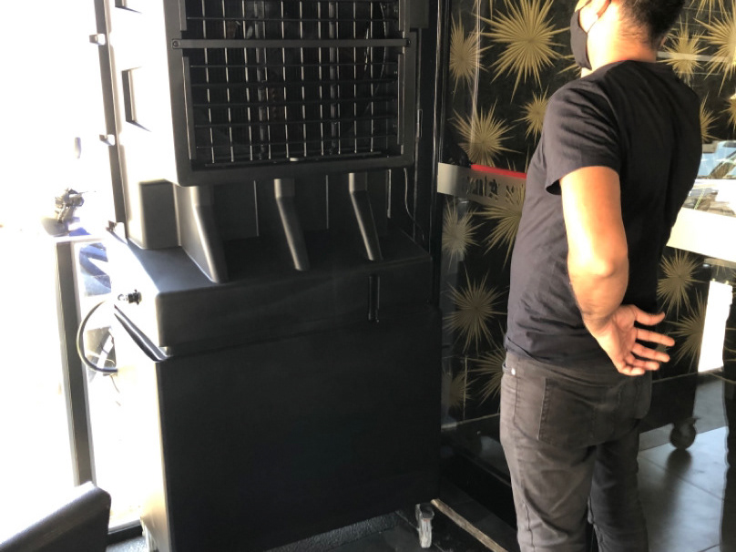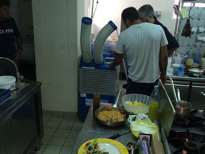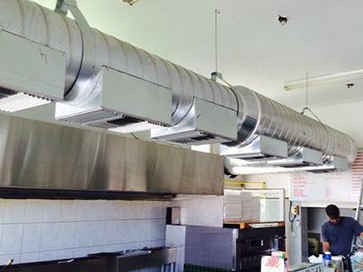 CUSTOMER: Request a save energy solution for cooling/ventilating his pizzeria kitchen - he wanted to have the flexibility to move around suggested solution