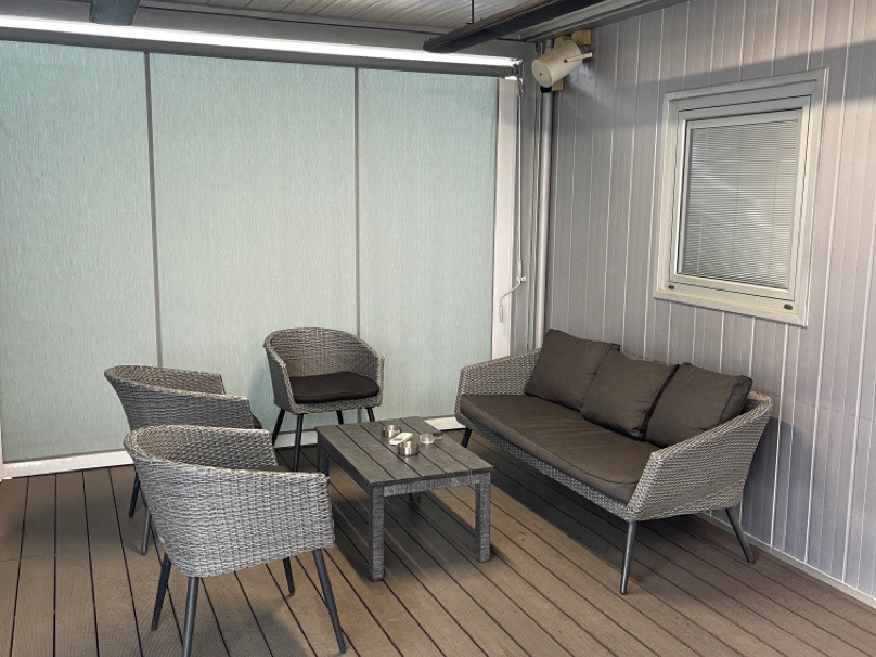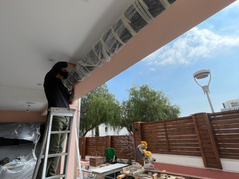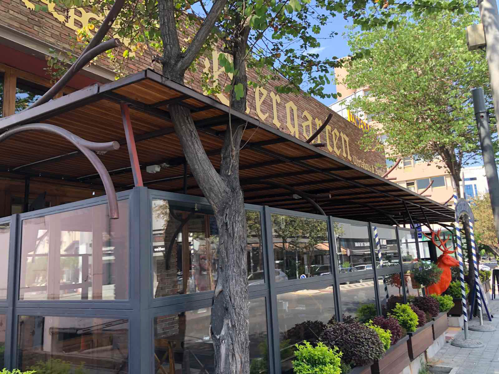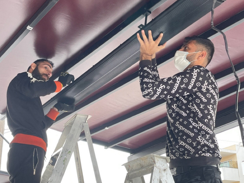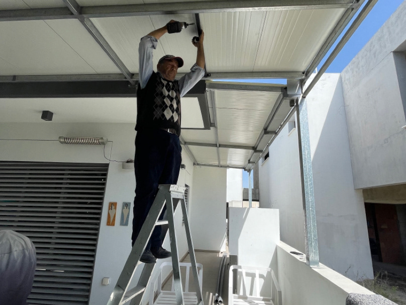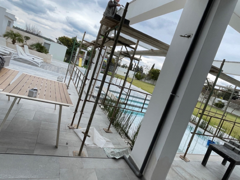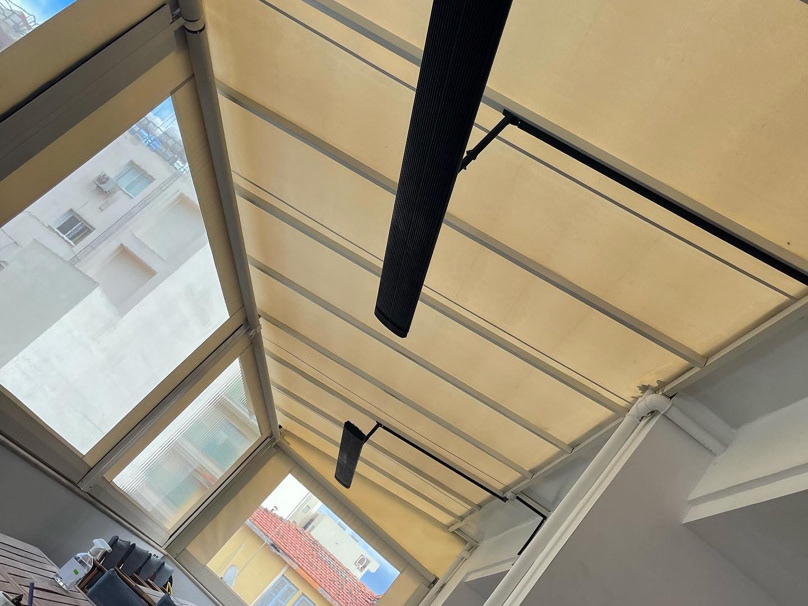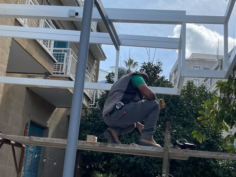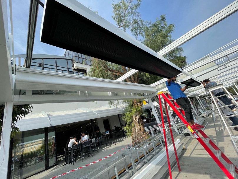 PROJECT: outdoor covered area 200 sq m with roof pergola that in winter the owner closes the sides wall with plastic PVC nylon