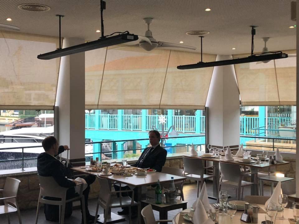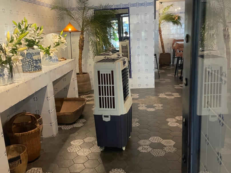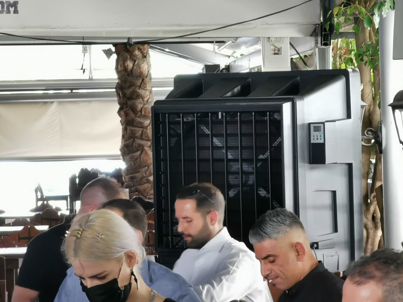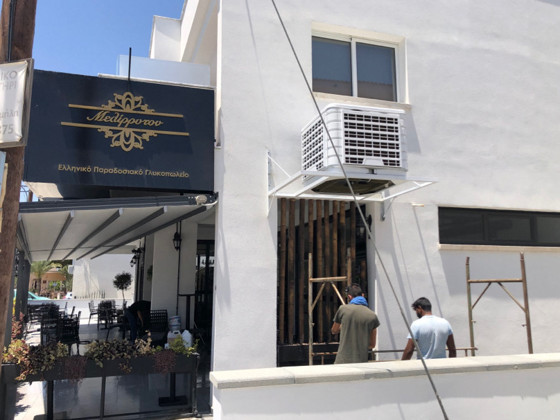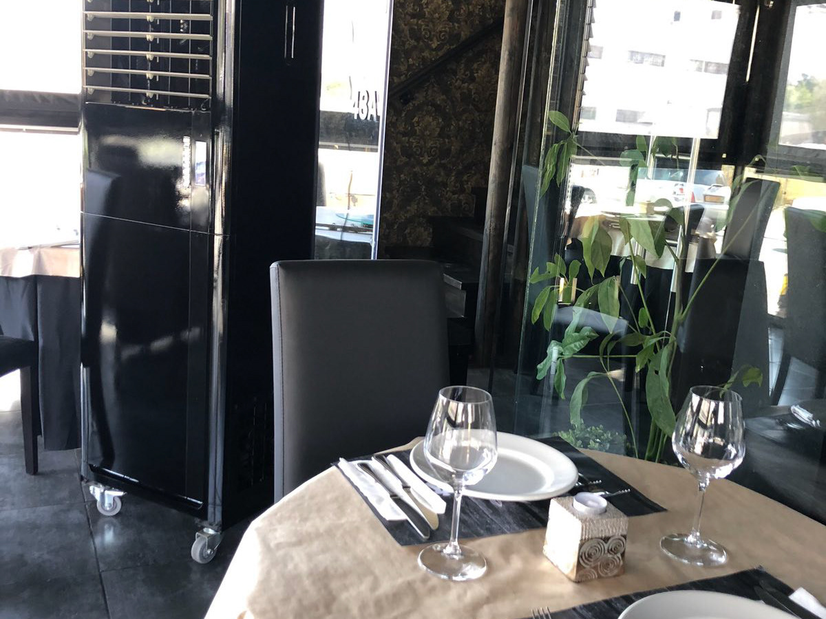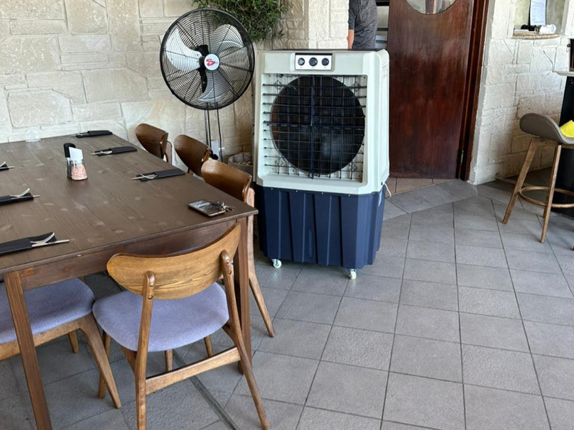 SOLUTION: 2 inverter evapoprative cooling units installed on the roof with insulated 20 meter galvanized duct and special painted ss grillies for distributing the cold air inside the restauarant.