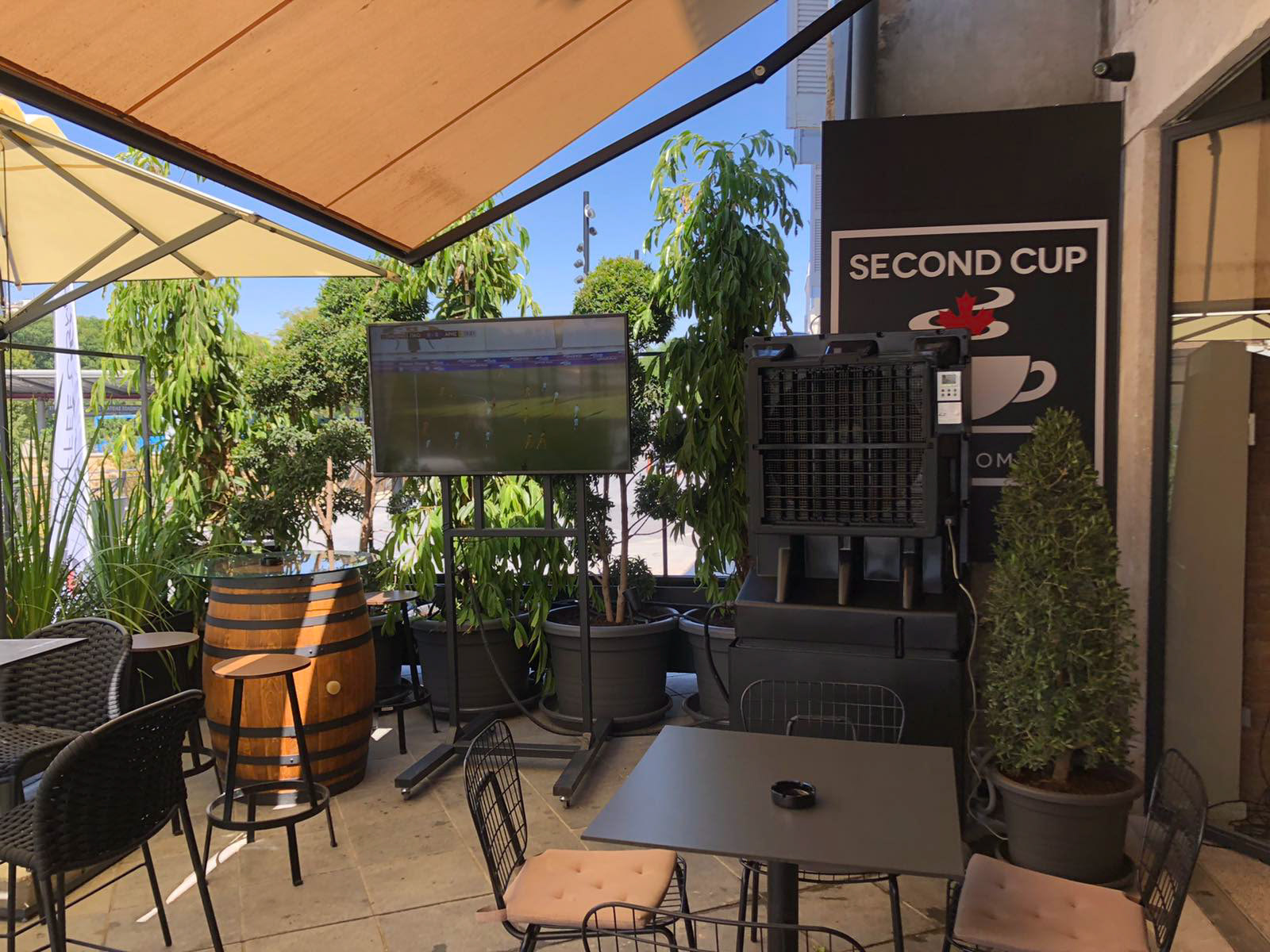 CUSTOMER: Requested a save energy quality cooling for his outdoor areas because of high humidity during summer