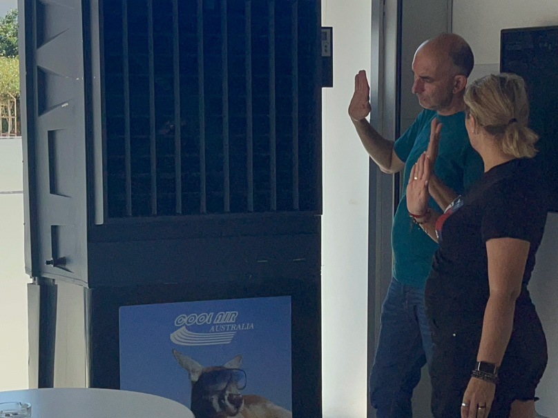 CUSTOMER: Requested a save energy cooling solution for his reception area that operates with open doors