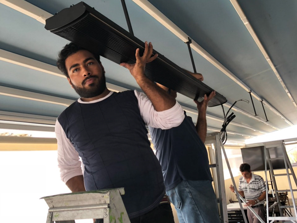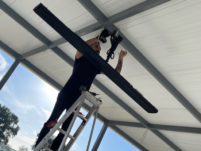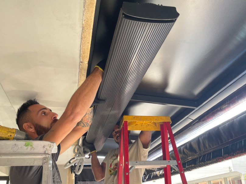 Outdoor smart Radiant Heating System & ceiling fan breeze system