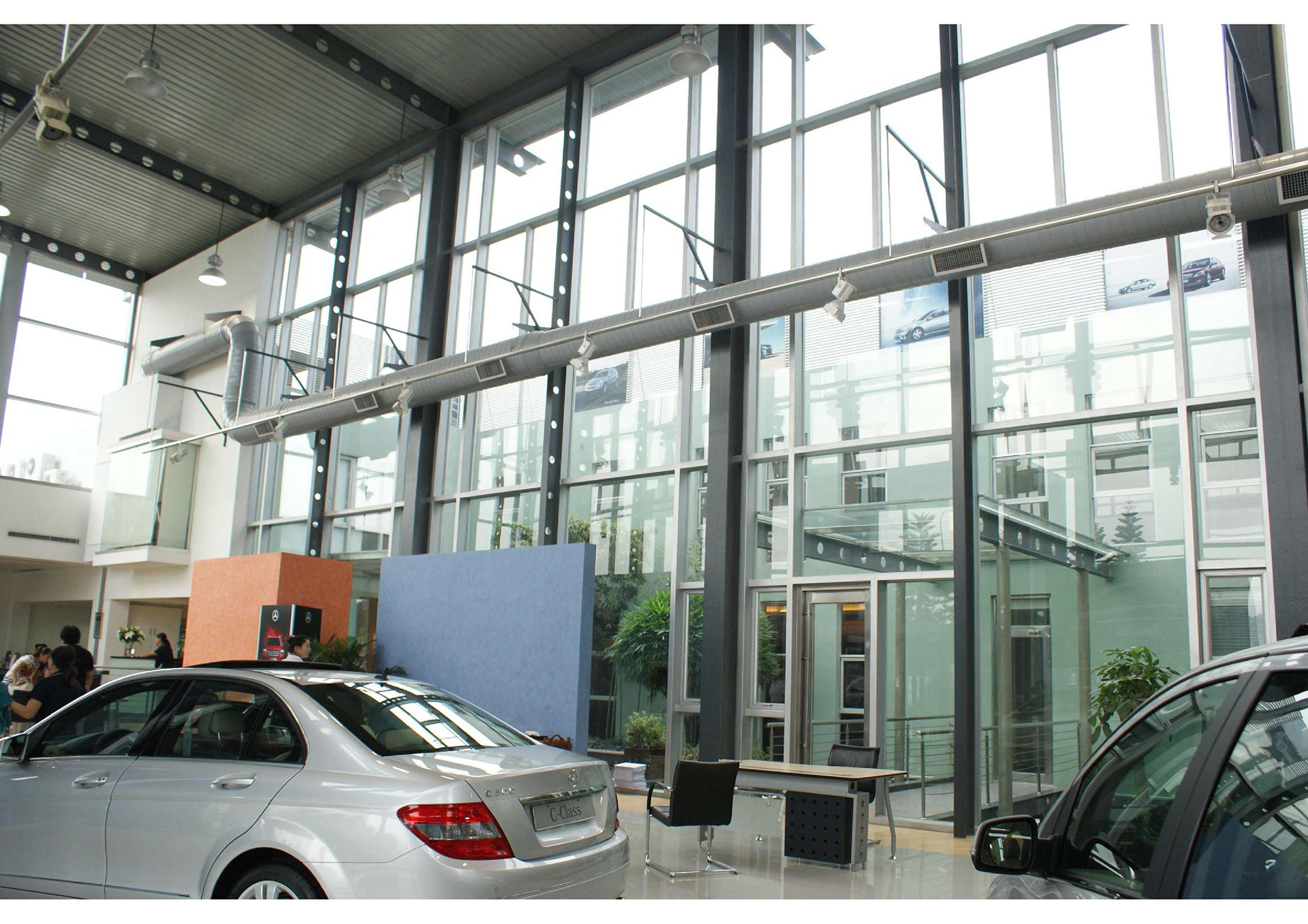 PROJECT: 1000 SQM Showroom , 1000 SQM garaje CUSTOMER: Requested a save energy cooling solution SOLUTION: Installation of centrifigural chiller in showroom and several coolers in garage area.