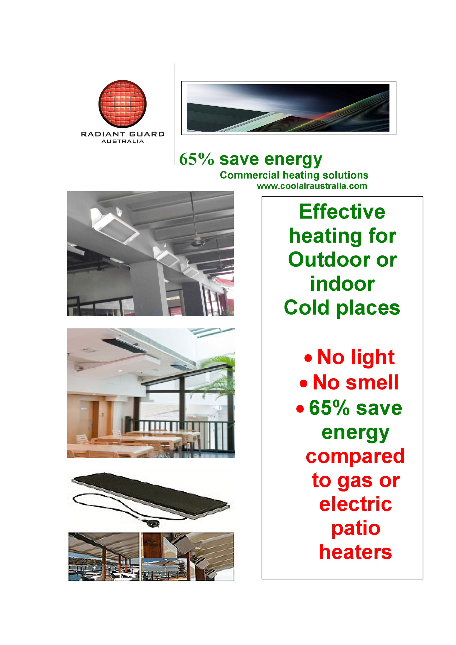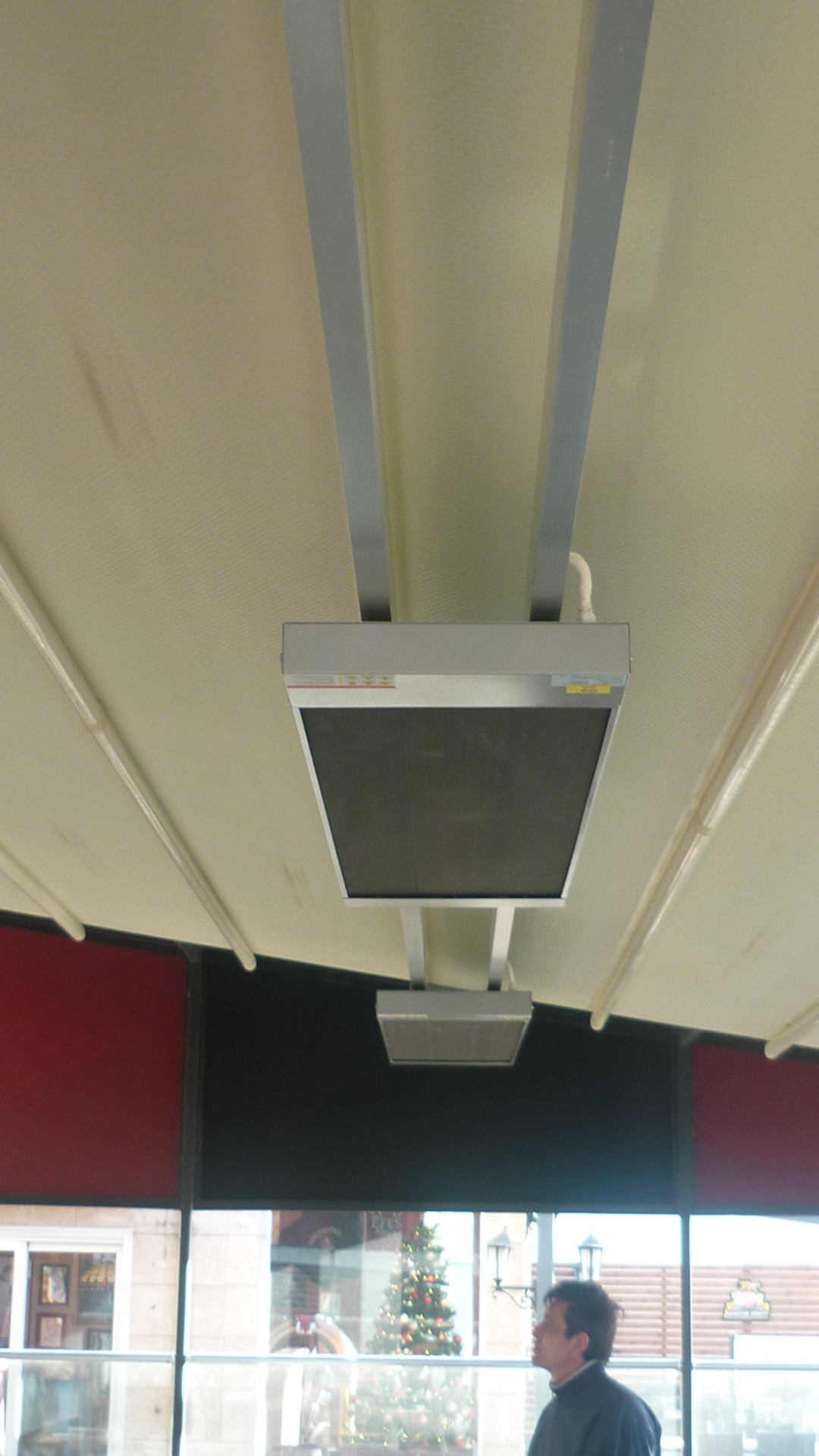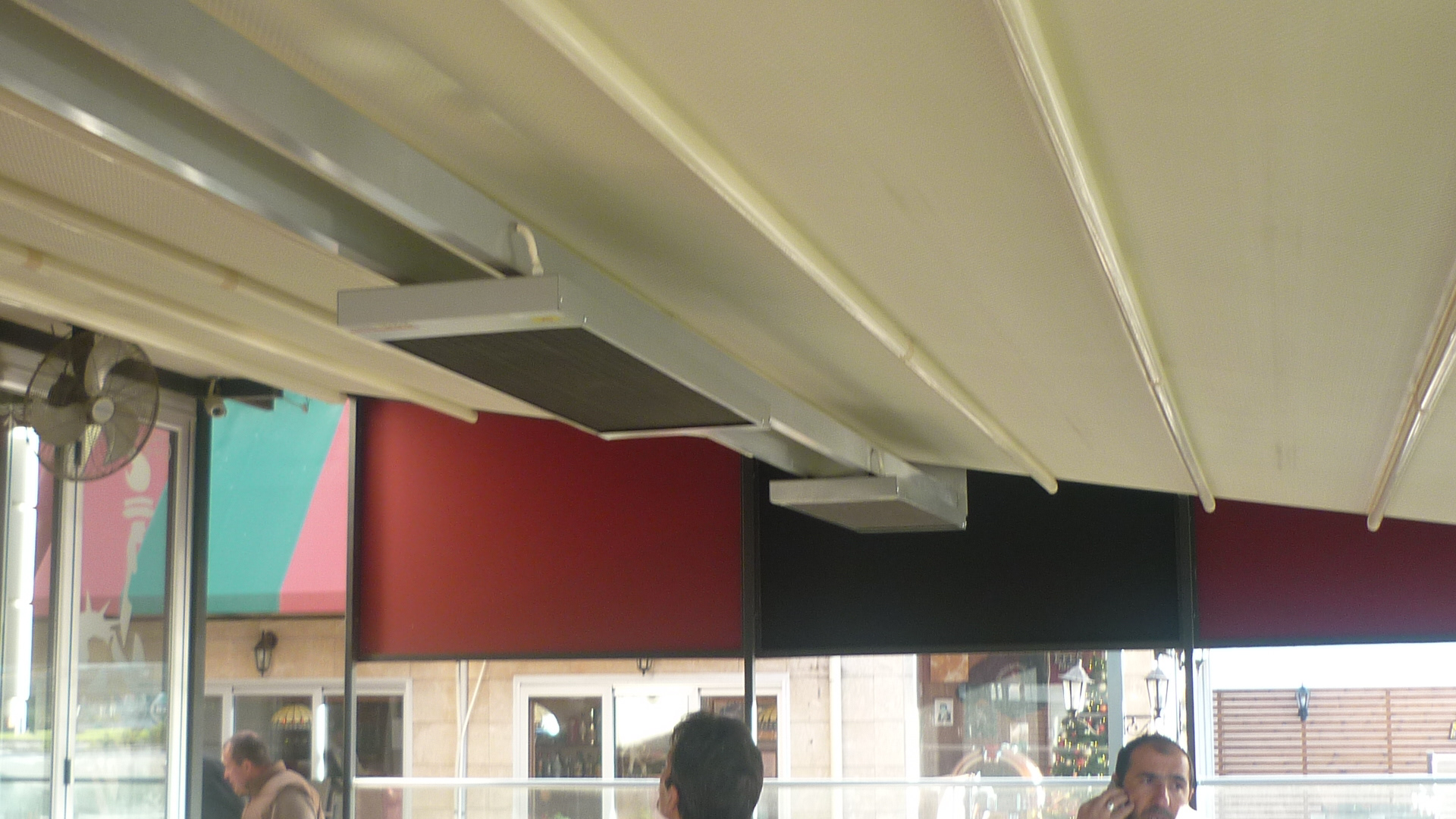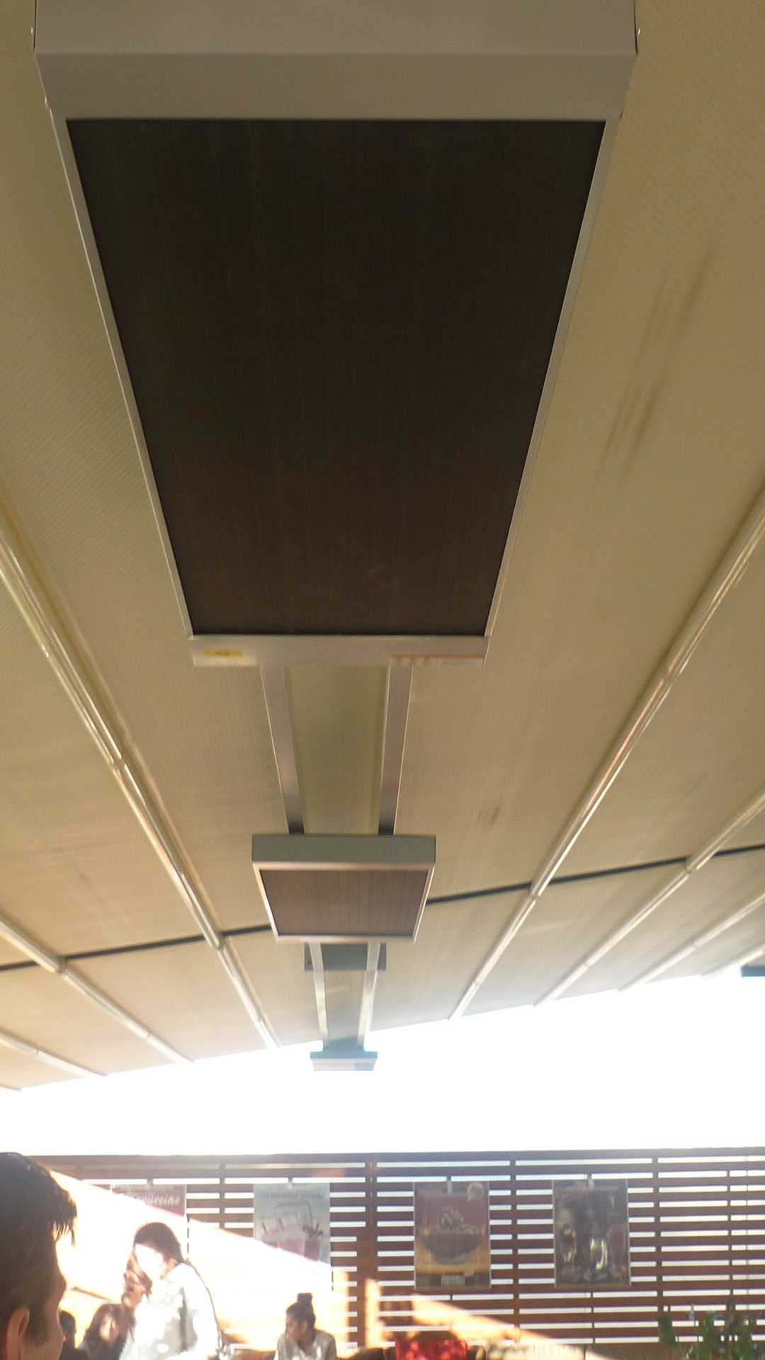 PROJECT: Outdoor covered cafeteria area CUSTOMER: Requested a save energy heating option not to emit any kind of light SOLUTION: Installation of commercial save energy 3 phase radiant heating