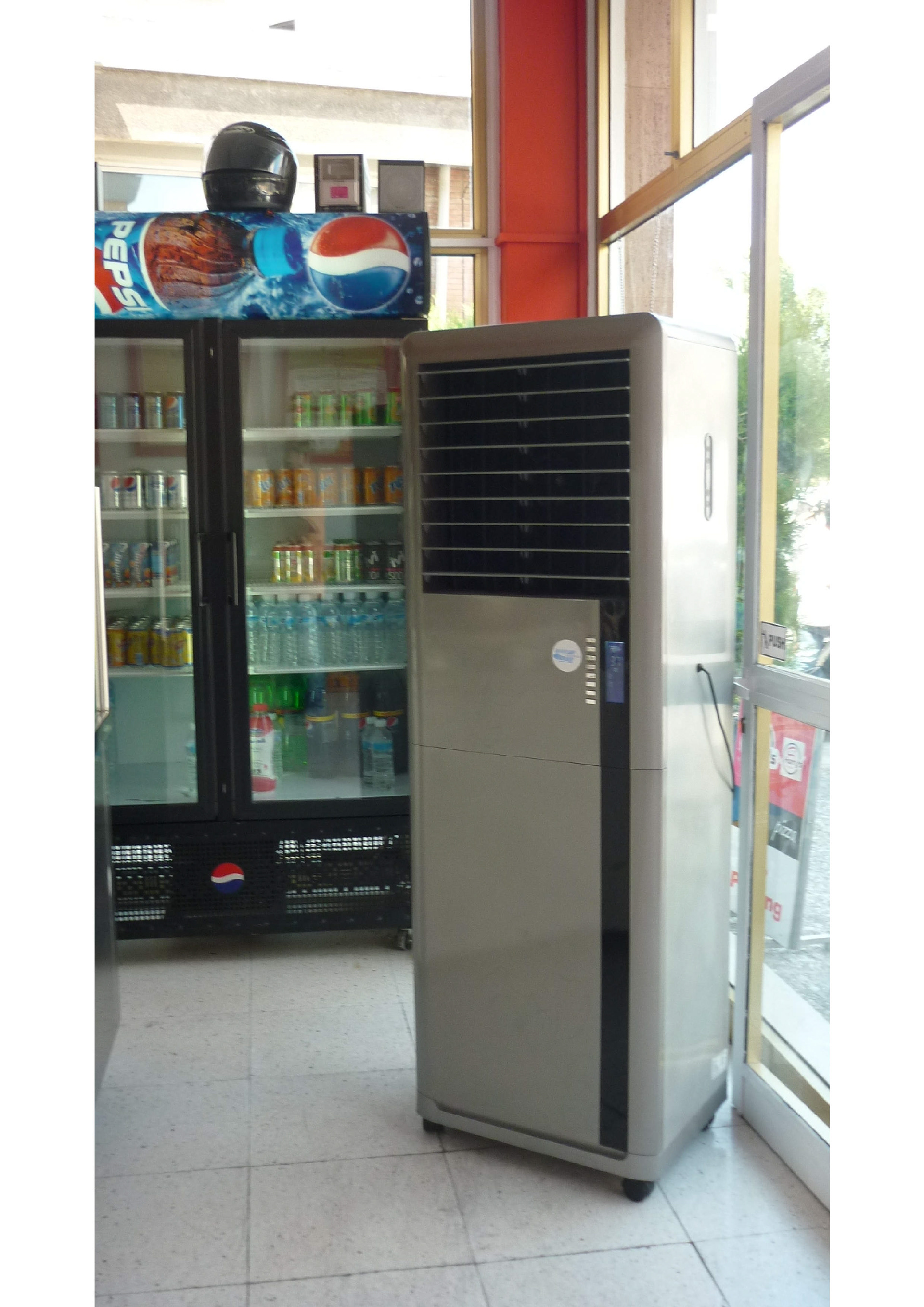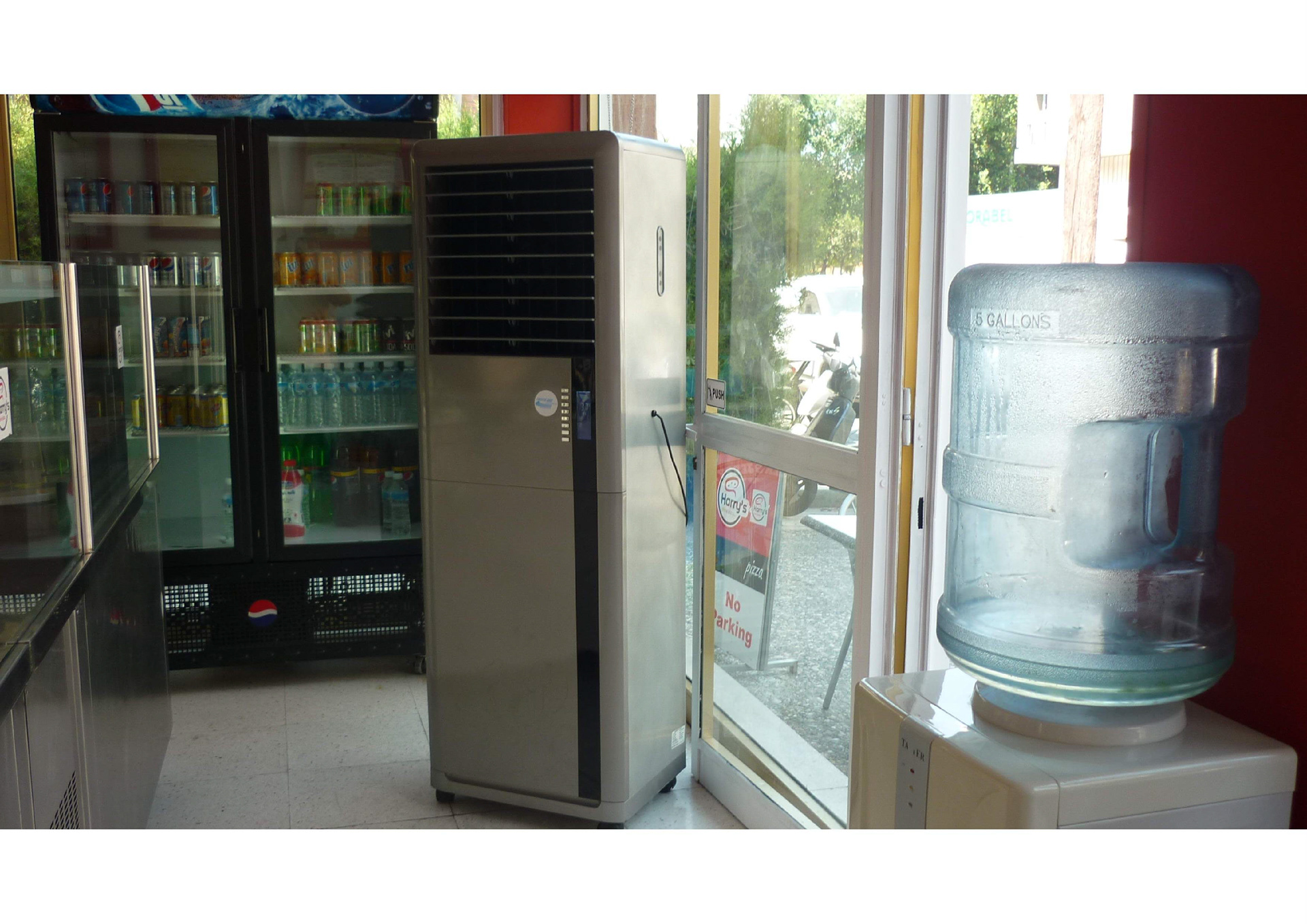 PROJECT: Reception cooling for Pizzeria CUSTOMER: Customer requested a save energy cooling solution SOLUTION: 1 42,000 BTU movable cooling unit operating with 180 watt.