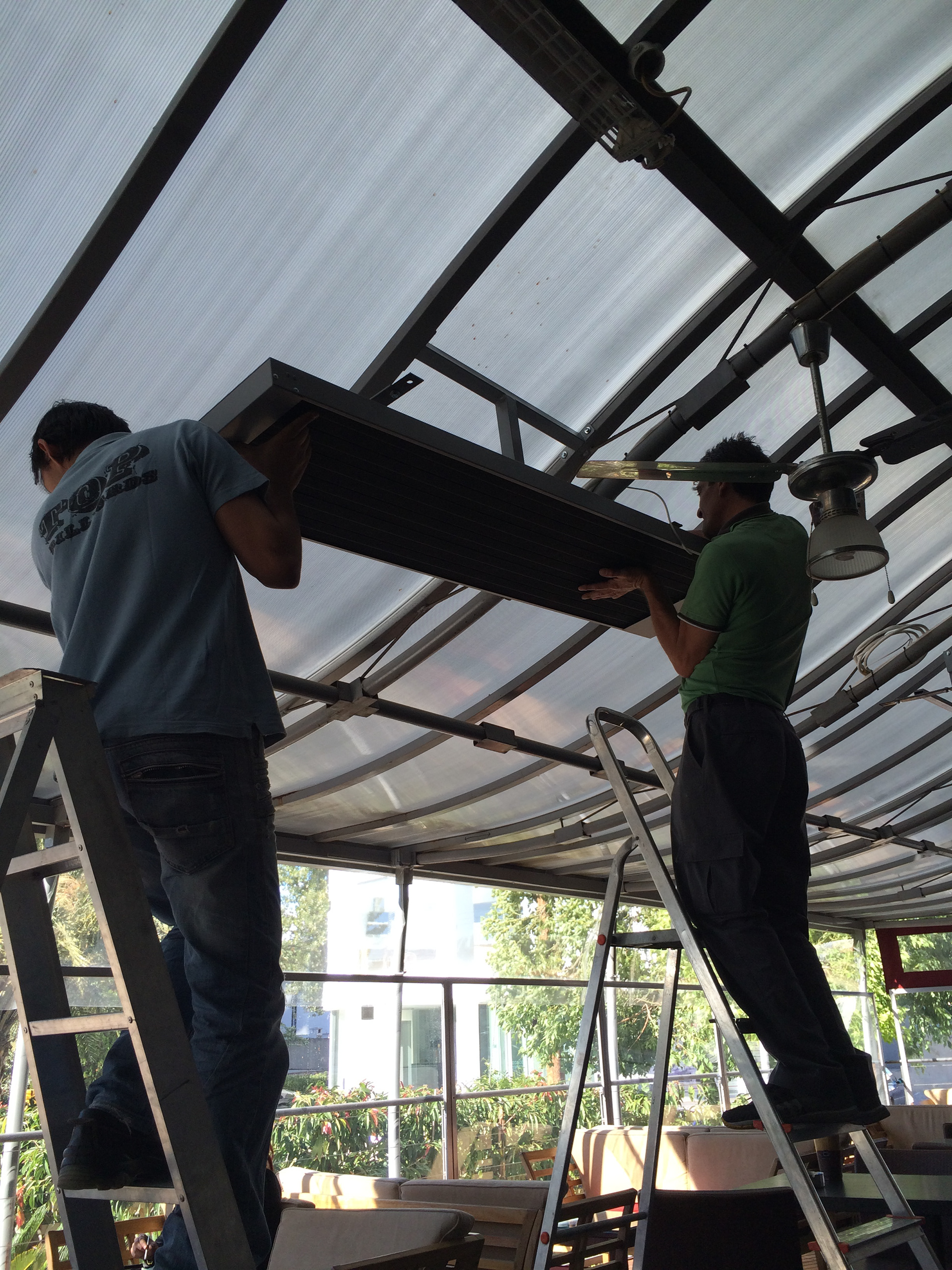 Project: outdoor covered patio 30mx6m Customer: requested a save energy heating solution to replace old type infrared heaters Solution: Installation of radiant heating solution