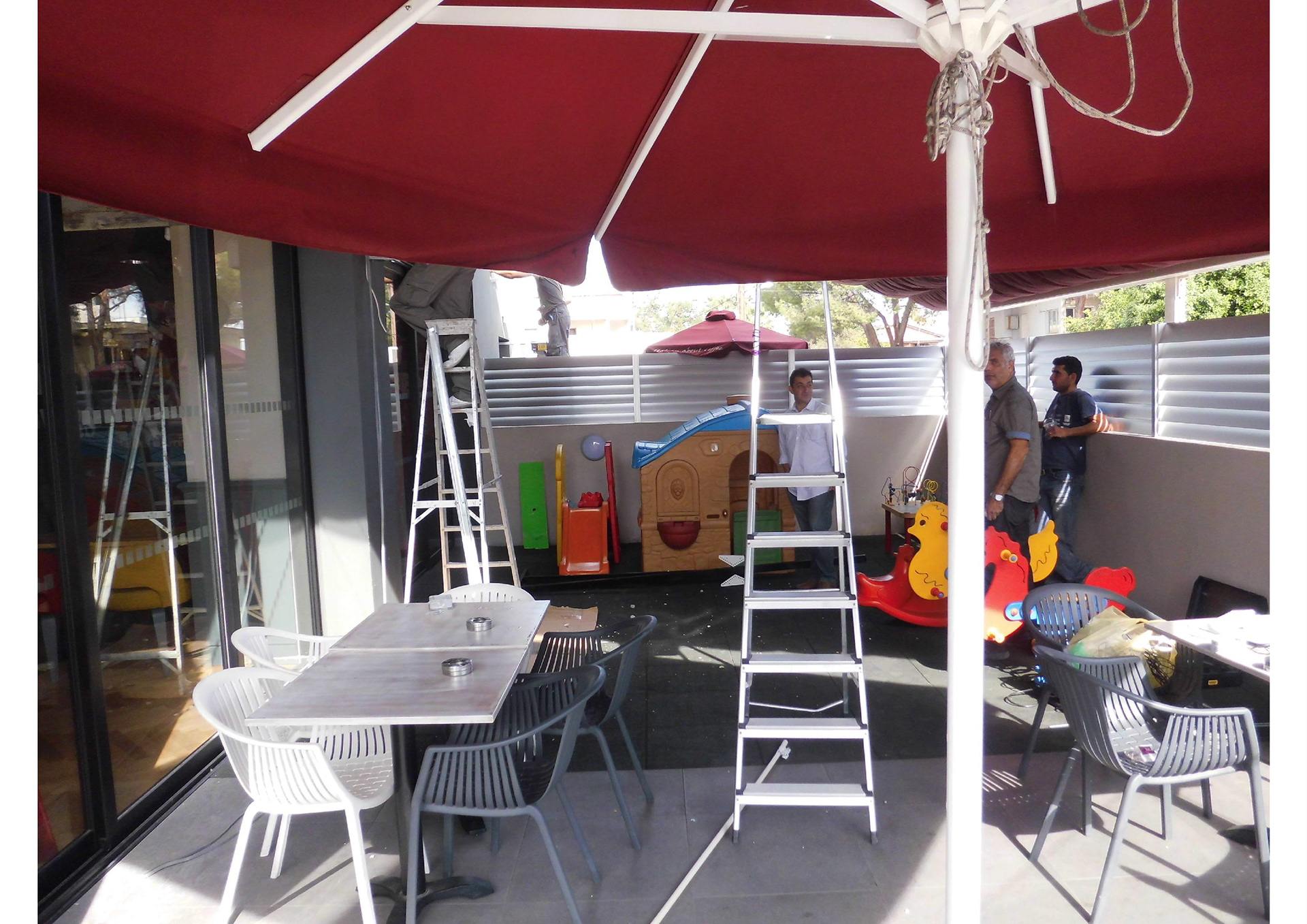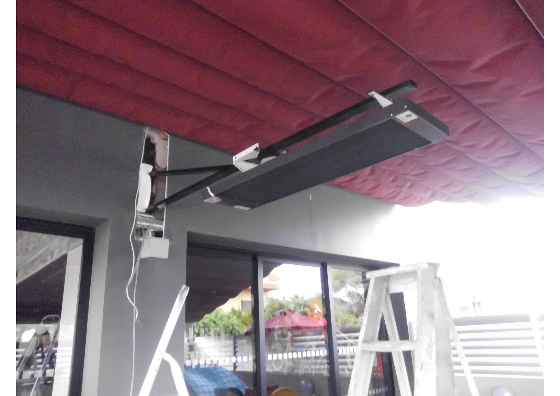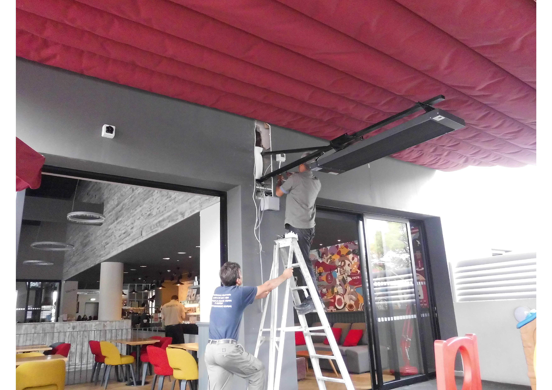 PROJECT: outdoor shaded area playground CUSTOMER: Requested a save energy heating solution that will not emmit any kind of light; no use of gaz; and safety standards for playground. SOLUTION: Installation of commercial radiant heater
