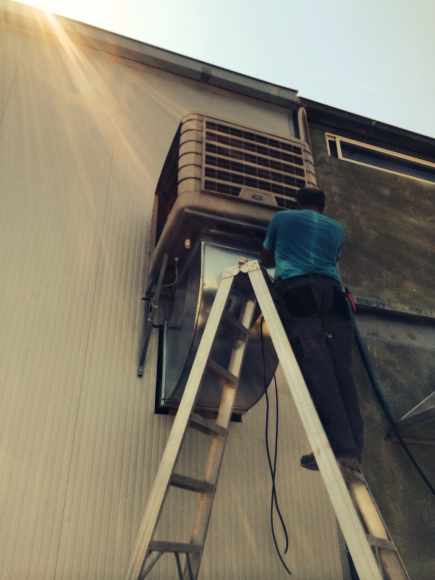 Customer requested an economic & save energy ventilation & cooling solution for his fruit & vegetable processing warehouse. Solution evaporative cooling to be operated with exhaust fan to balance humidity and temperature