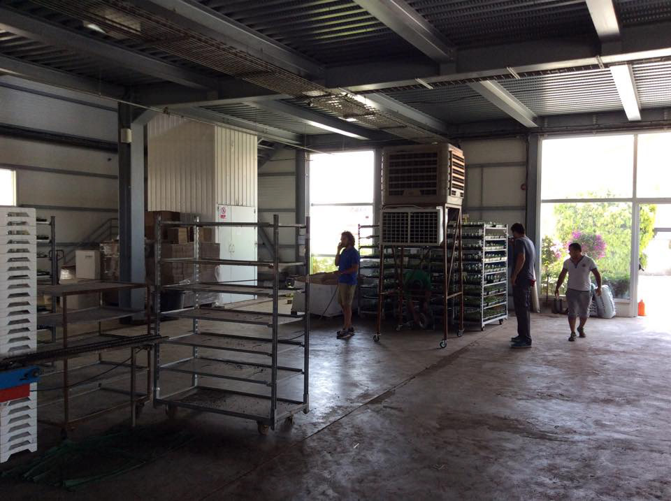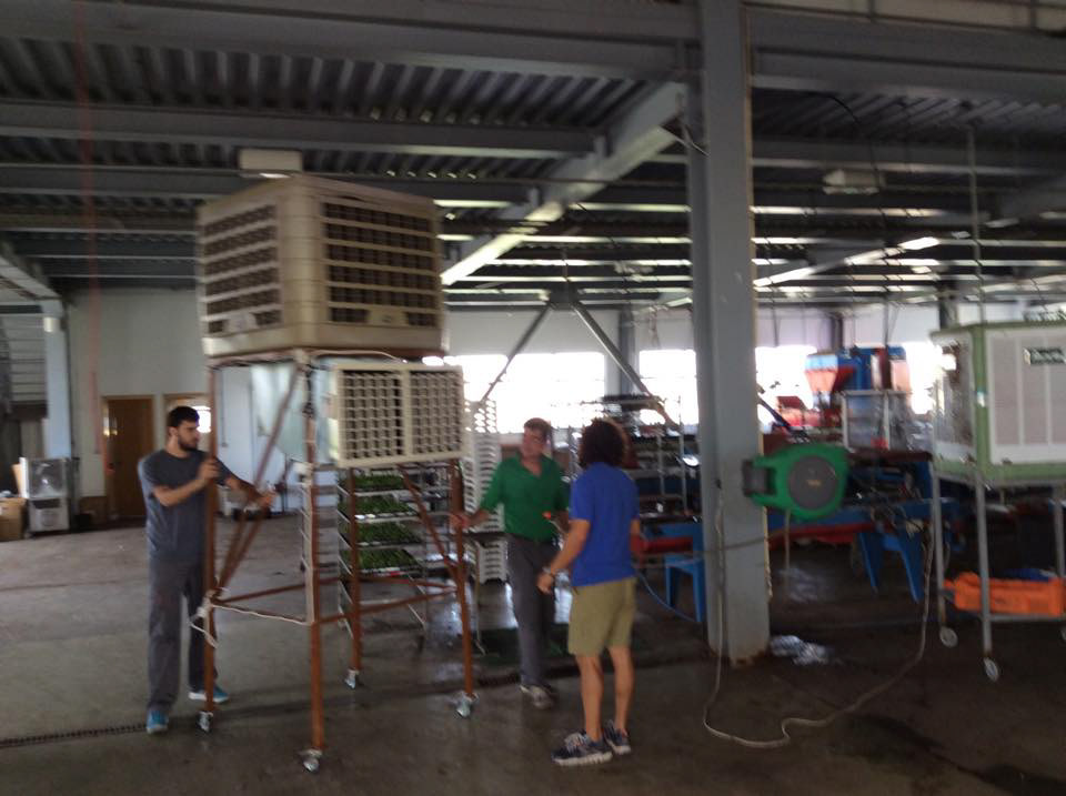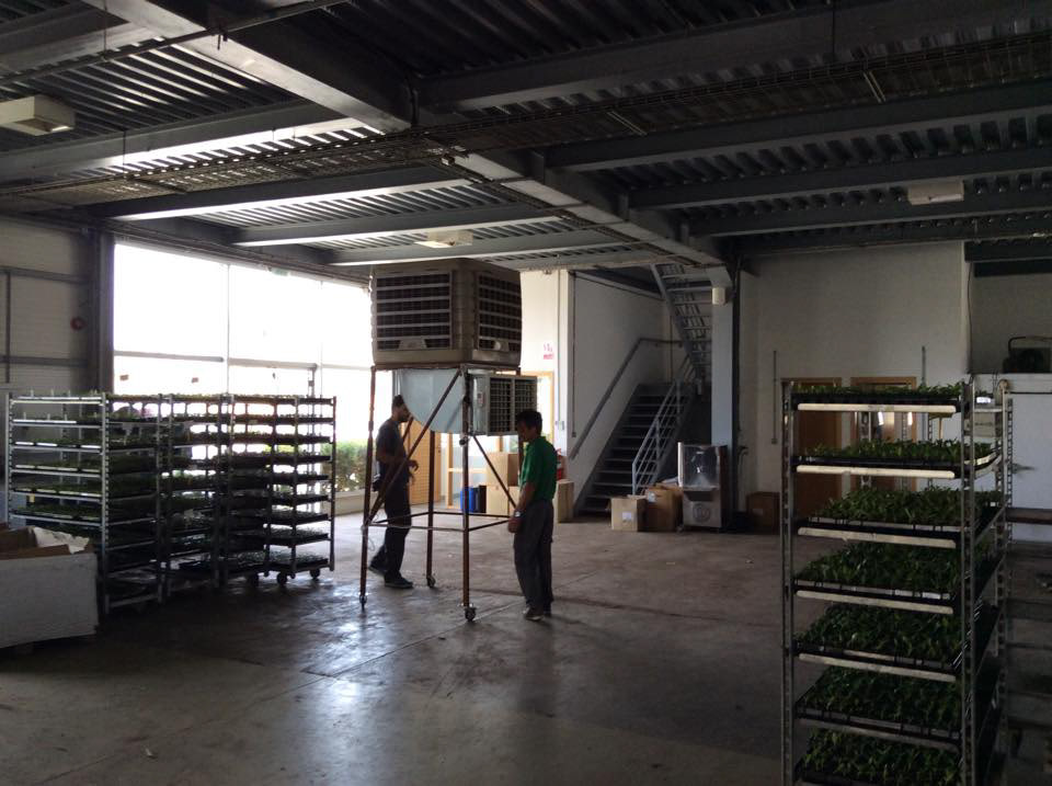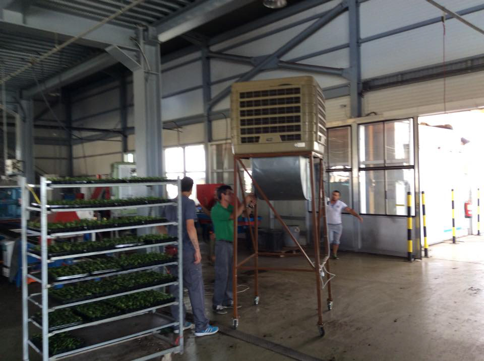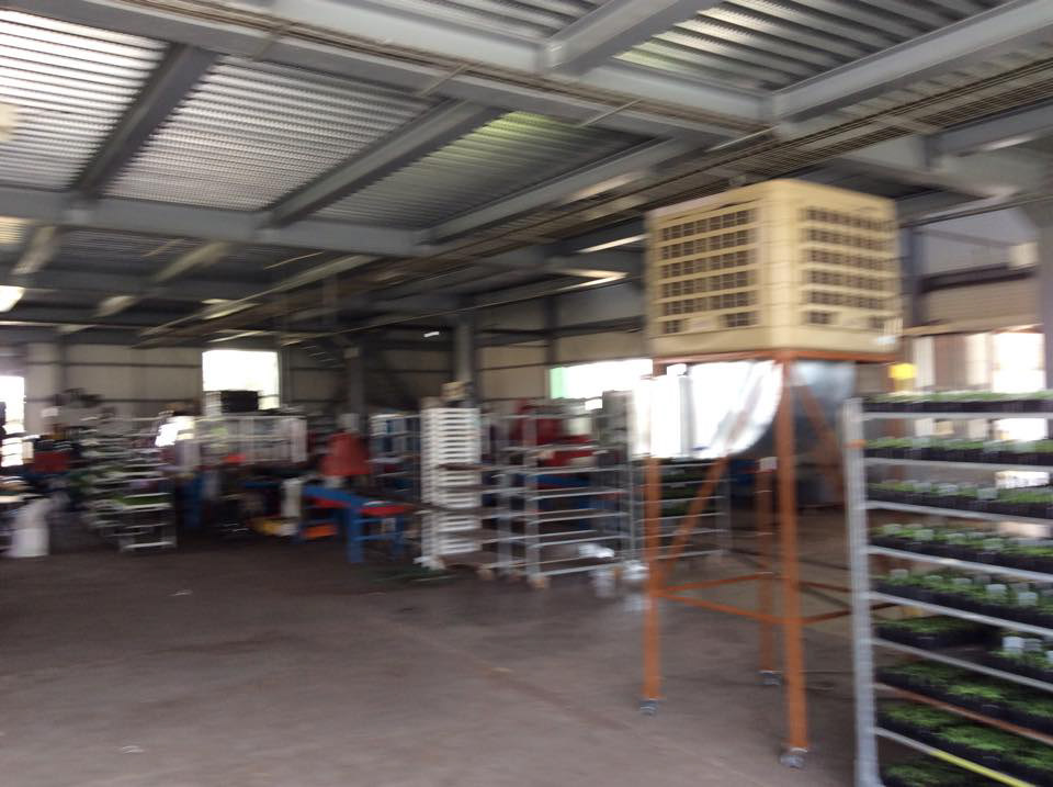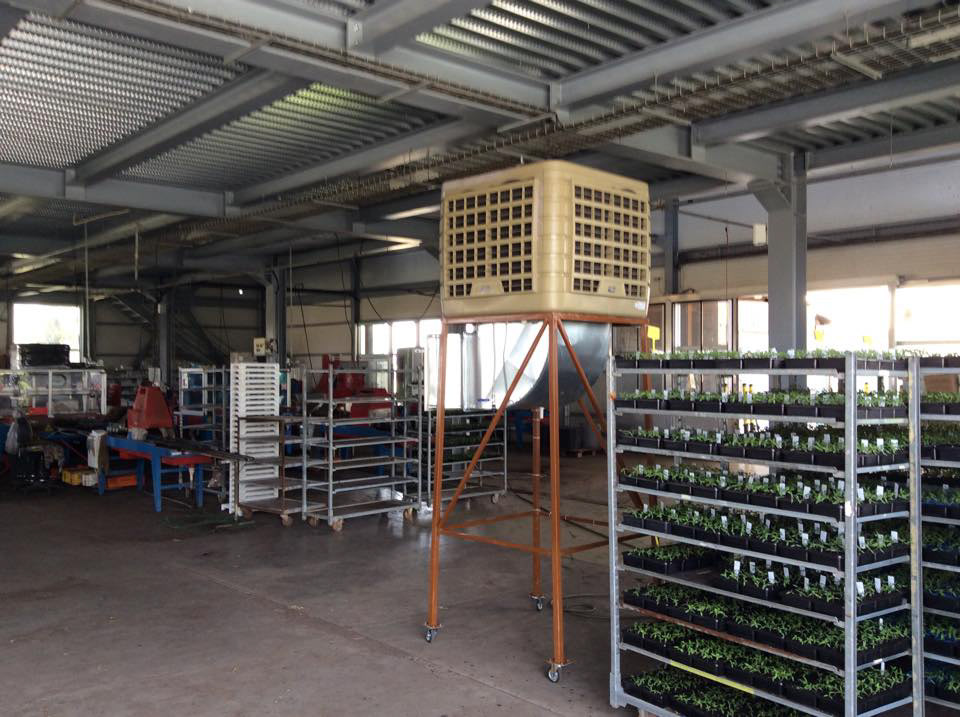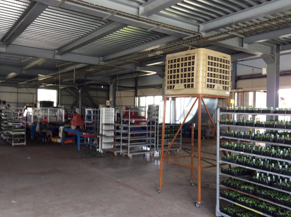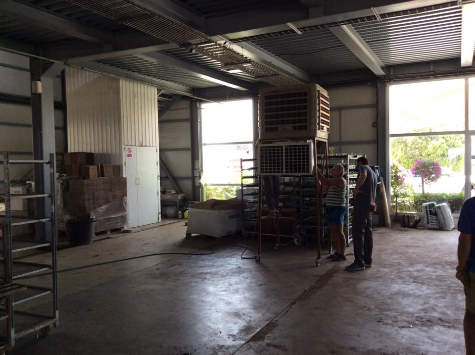 Project: High ceiling industrial warehouse cooling Customer: Requested a portable, efficient, strong airflow cooling solution Solution: 18,000 CFM portable aircooler with humidity & temperature control