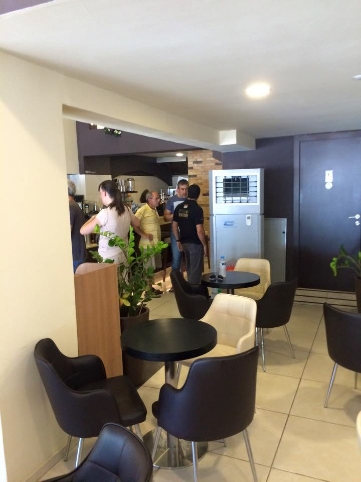 PROJECT: cafeteria's indoor area with open doors and windows. CUSTOMER: Requested a save energy cooling solution SOLUTION: Installation one unit COOLAIR400