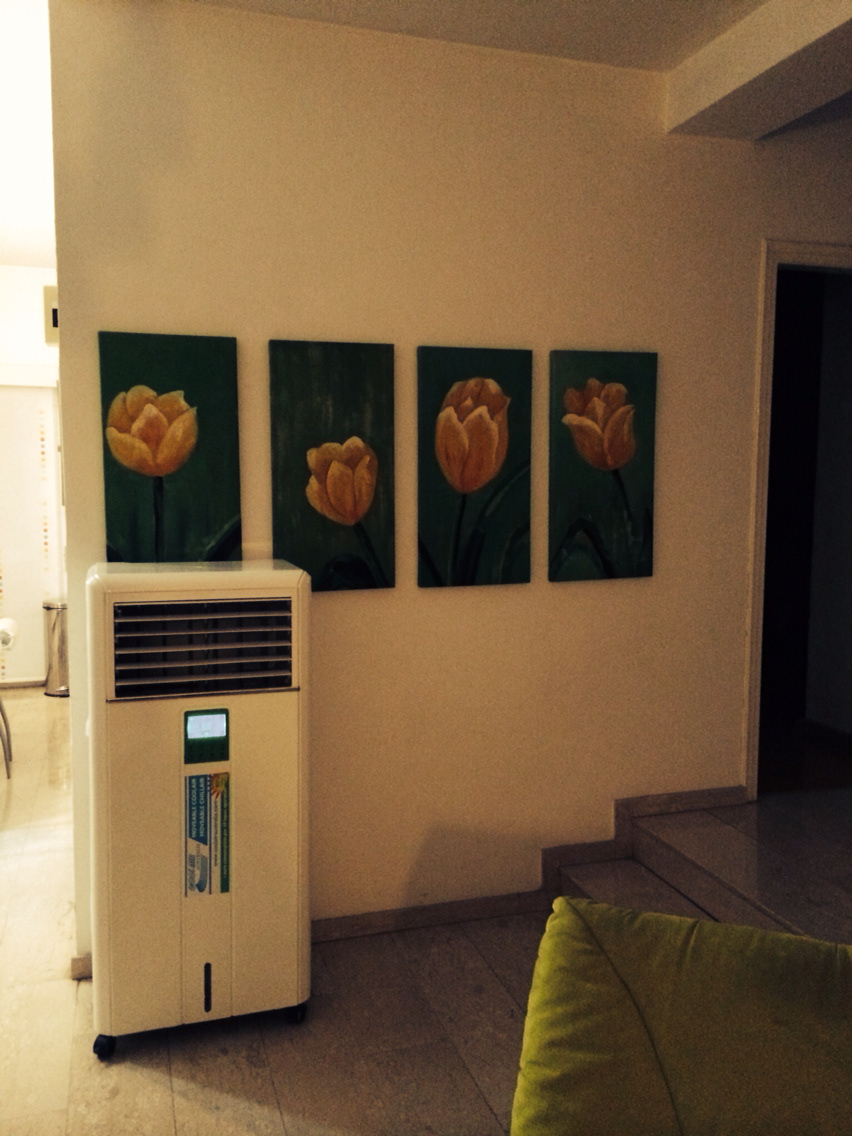Family requested a save energy portable cooling solution for their open plan area house. Solution installation of one 30,000 BTU portable cooling unit to consume 1 euro per 24 hr operatipn!