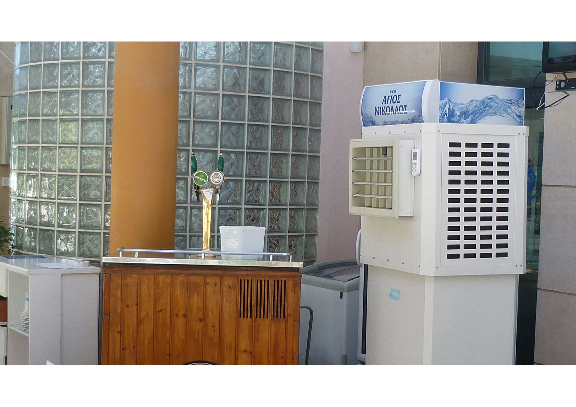 PROJECT: Restaurant outdoor covered area CUSTOMER: Requested a save energy cooling solution for his open area SOLUTION: Installation of 2 movable cooling units 60,000 BTU - 580 watt