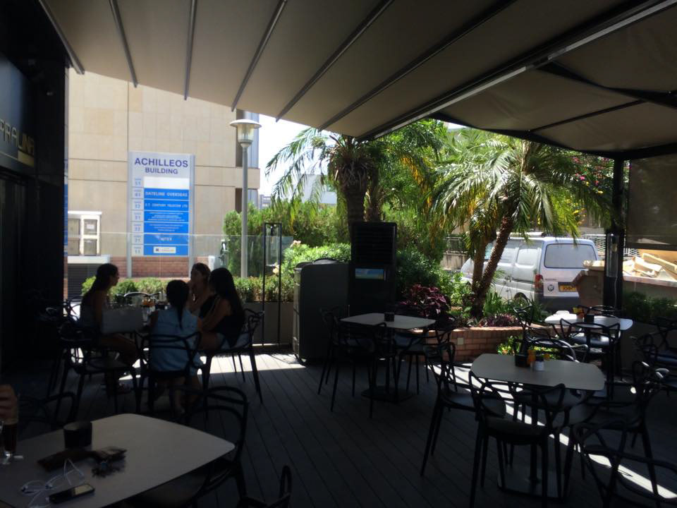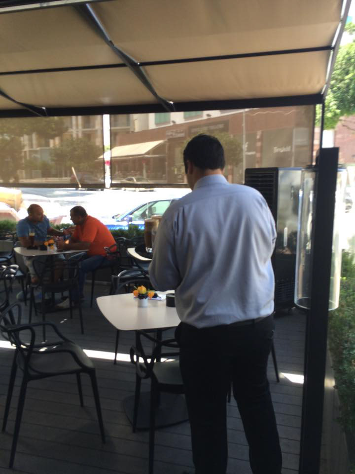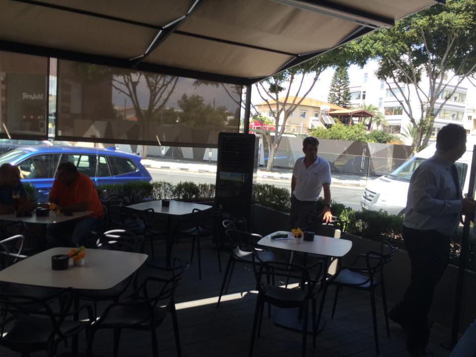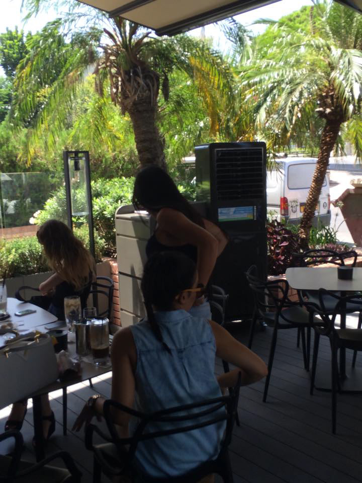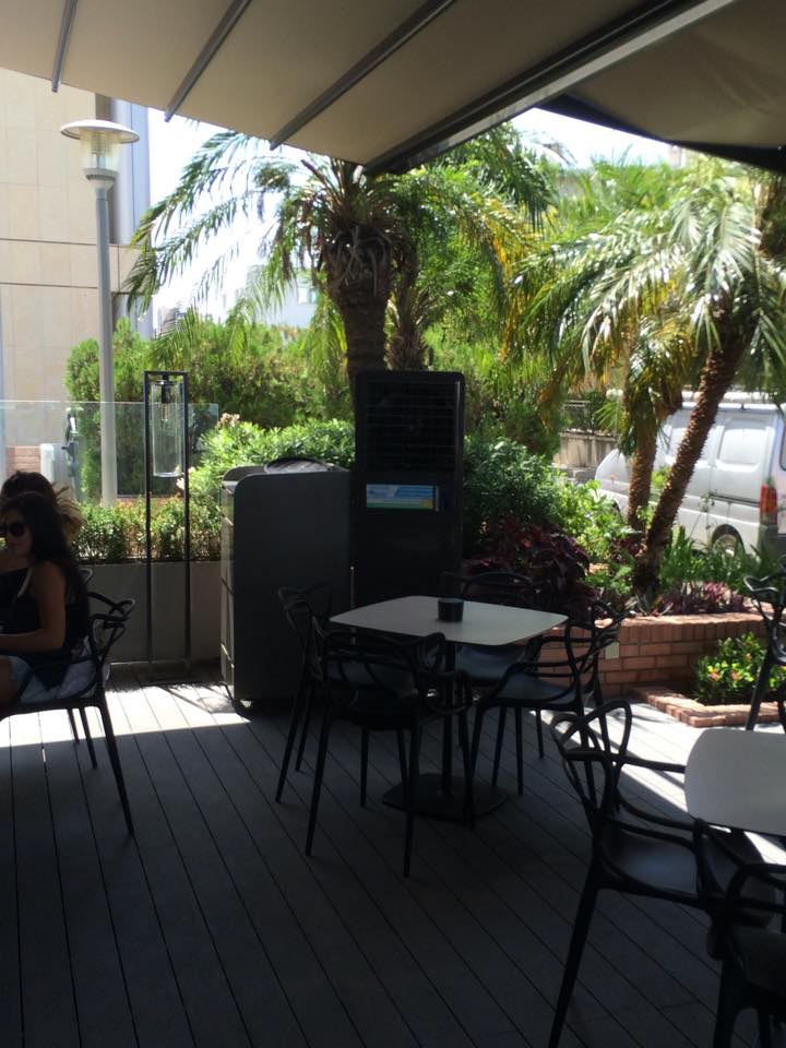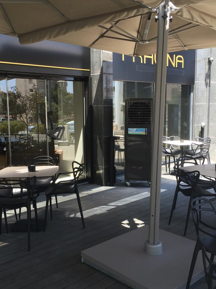 PROJECT: Cafeterias outdoor sitting areas cooling CUSTOMER: Requested a save energy minimalist super cold airflow cooling solution SOLUTION: 4 units COOLAIR300 compressor water cooled model