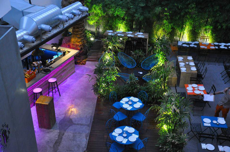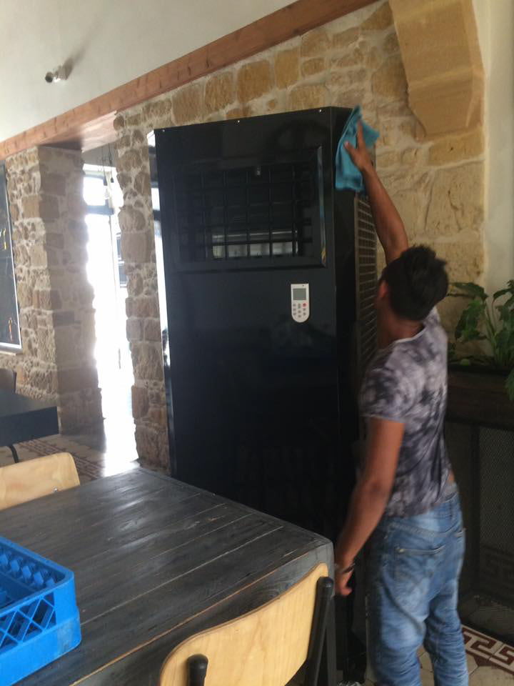 PATIO cocktail bar restaurant outdoor covered sitting area portable cooling installation