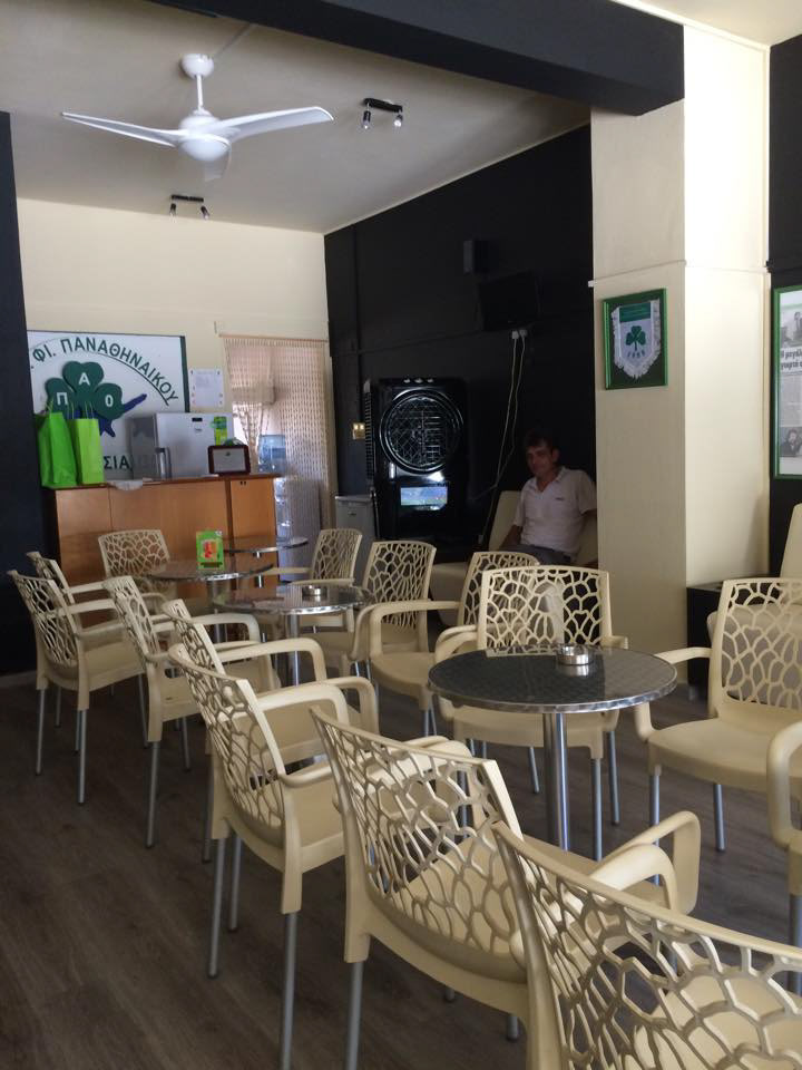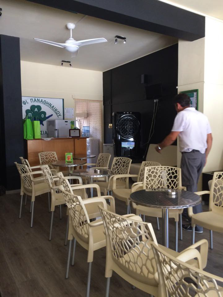 PROJECT: Indoor area save energy cooling CUSTOMER: Requested a save energy cooling solution to operate with open doors and windows for his betting shop. SOLUTION: Installation COOLAIR75 & COOLAIR50 portable BLACK color models.