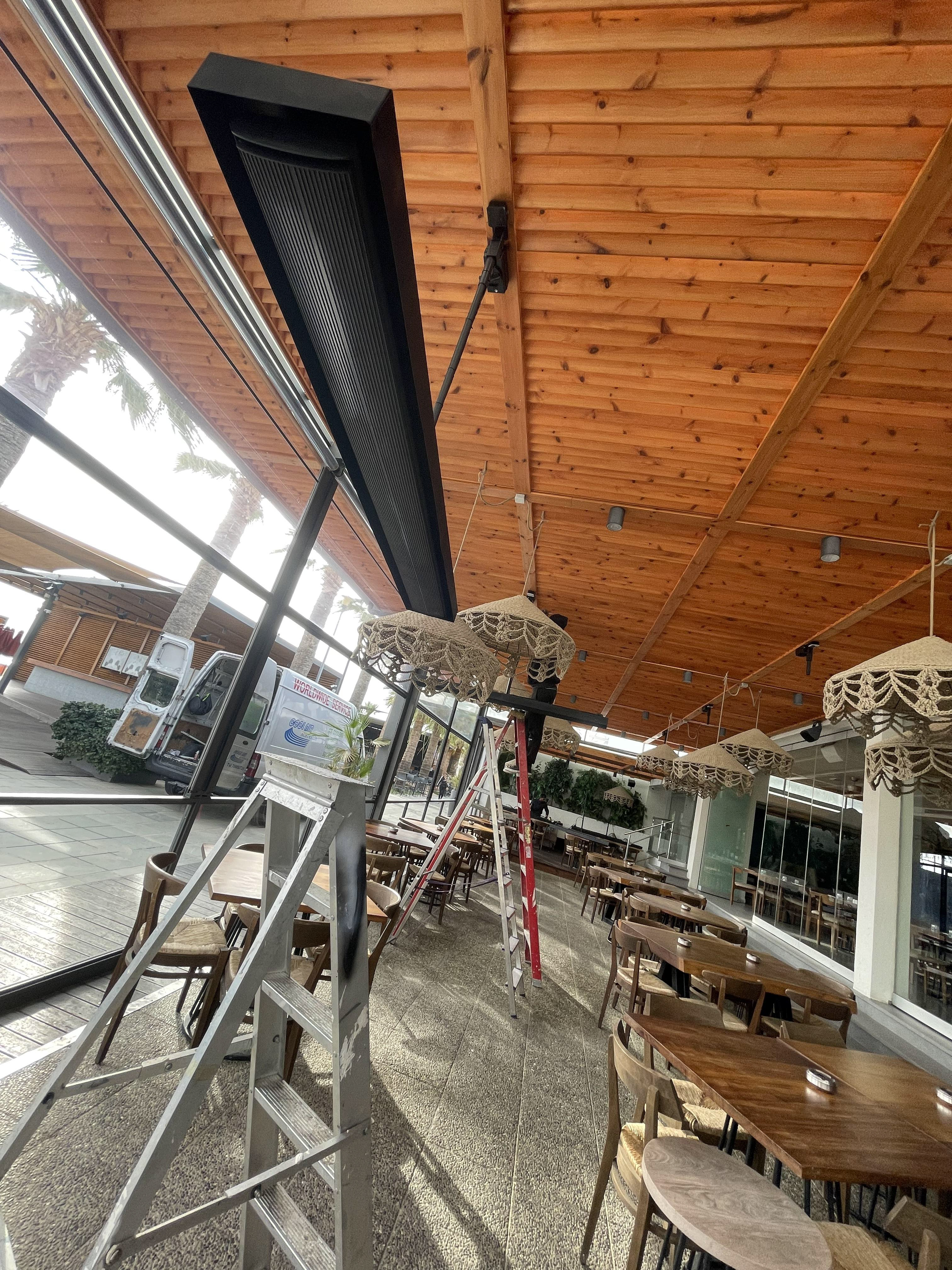 Restaurant outdoor dinner heating & cooling system www.Coolairaustralia.com