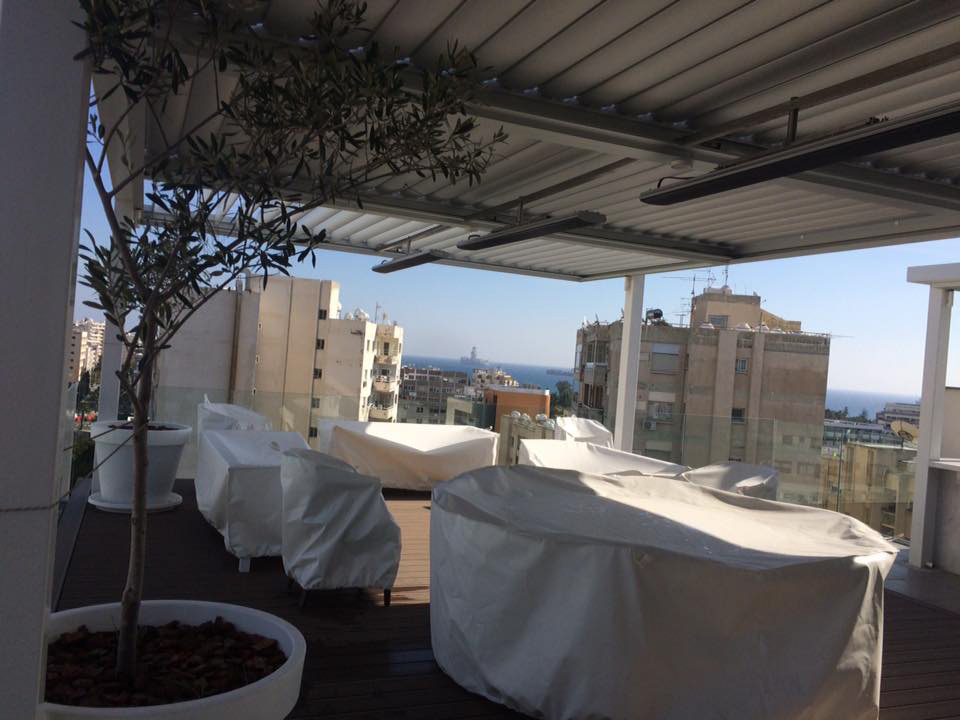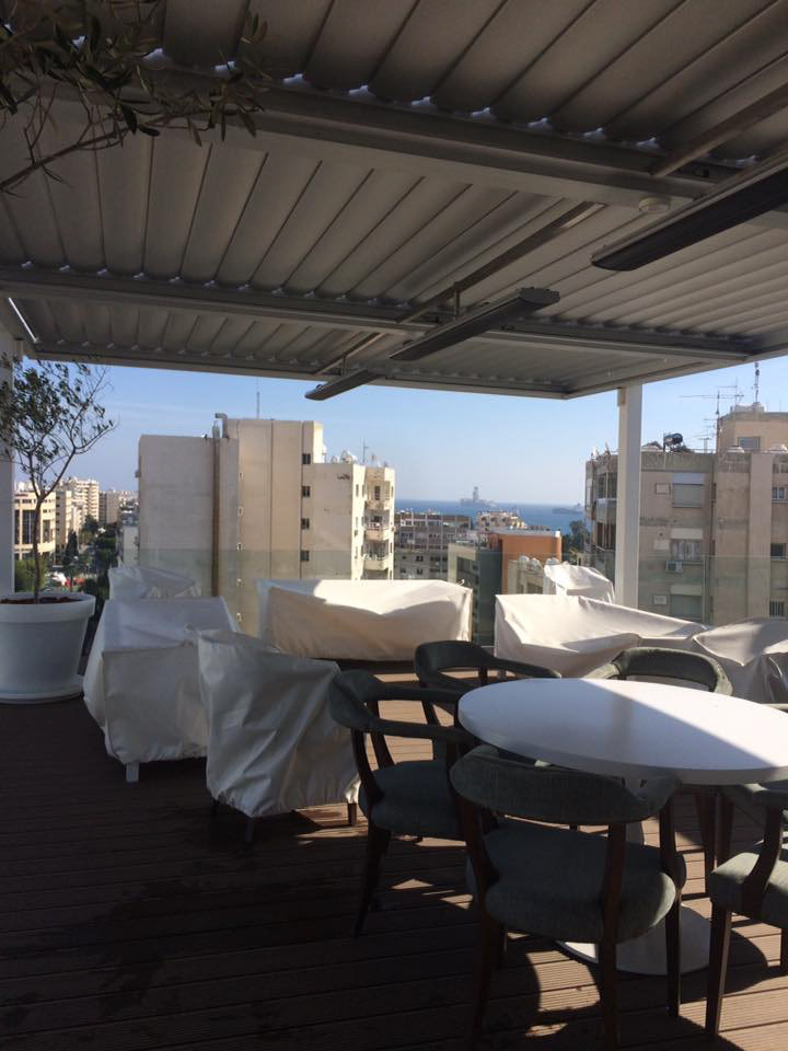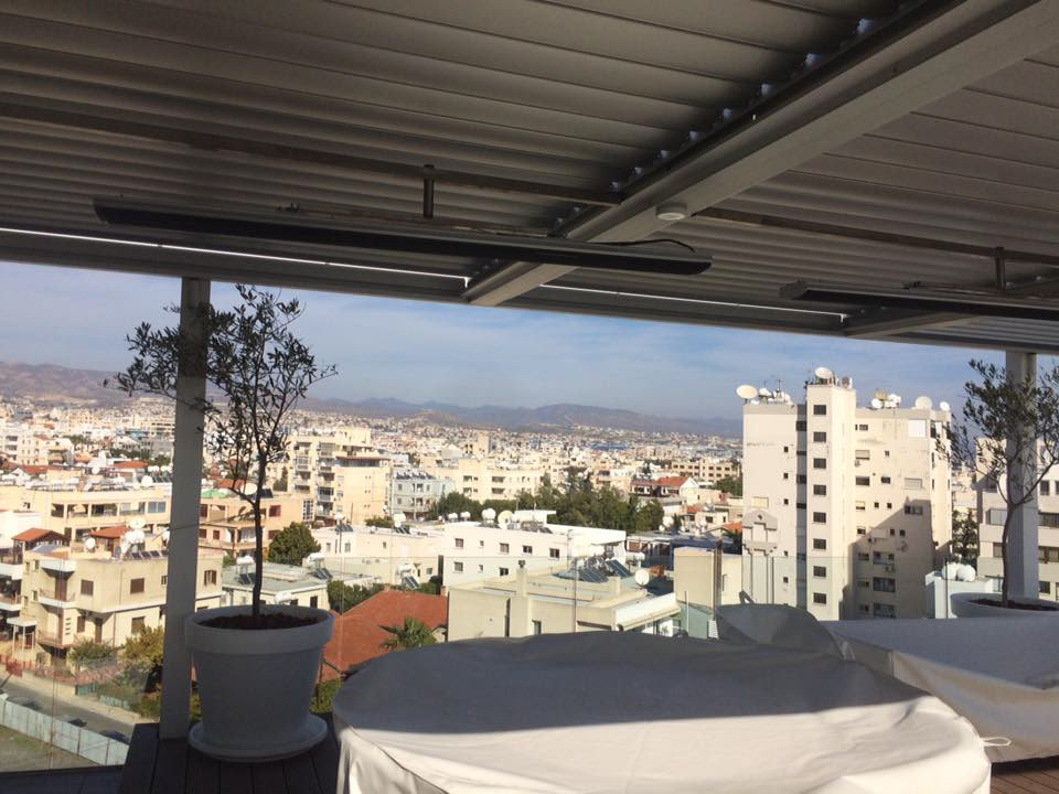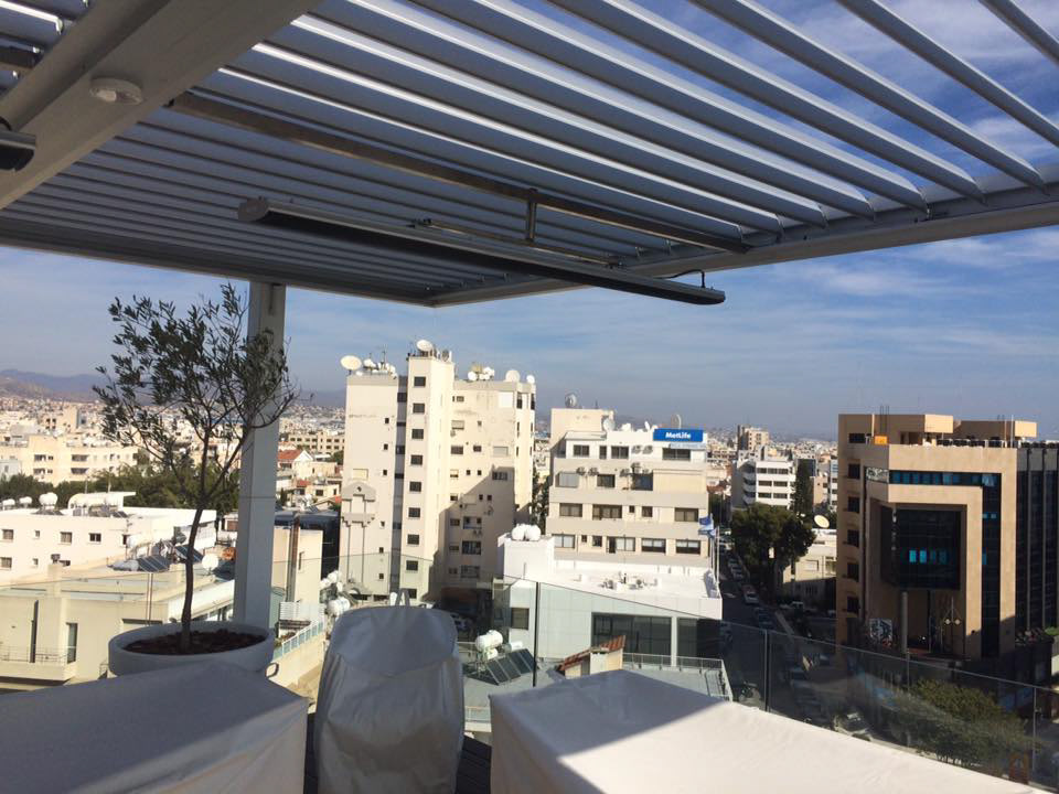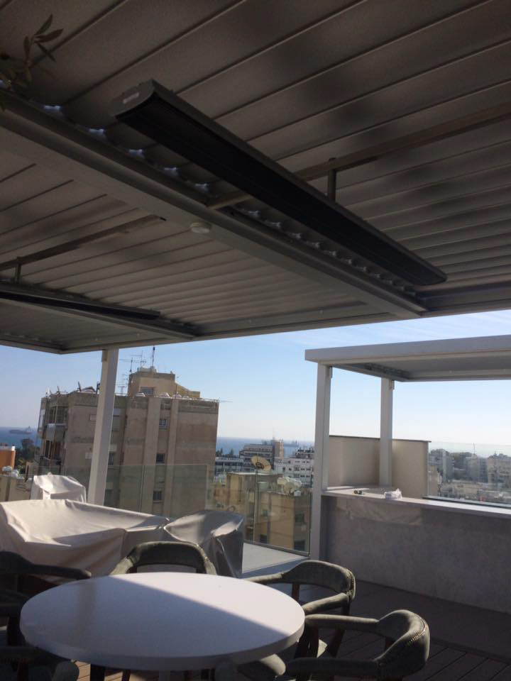 PROJECT: Roof top garden patio automated pergola stainless steel heating solution CUSTOMER: Requested a slim design, zero light, super efficient heating solution SLUTION: Stainless steel smart radiant heaters