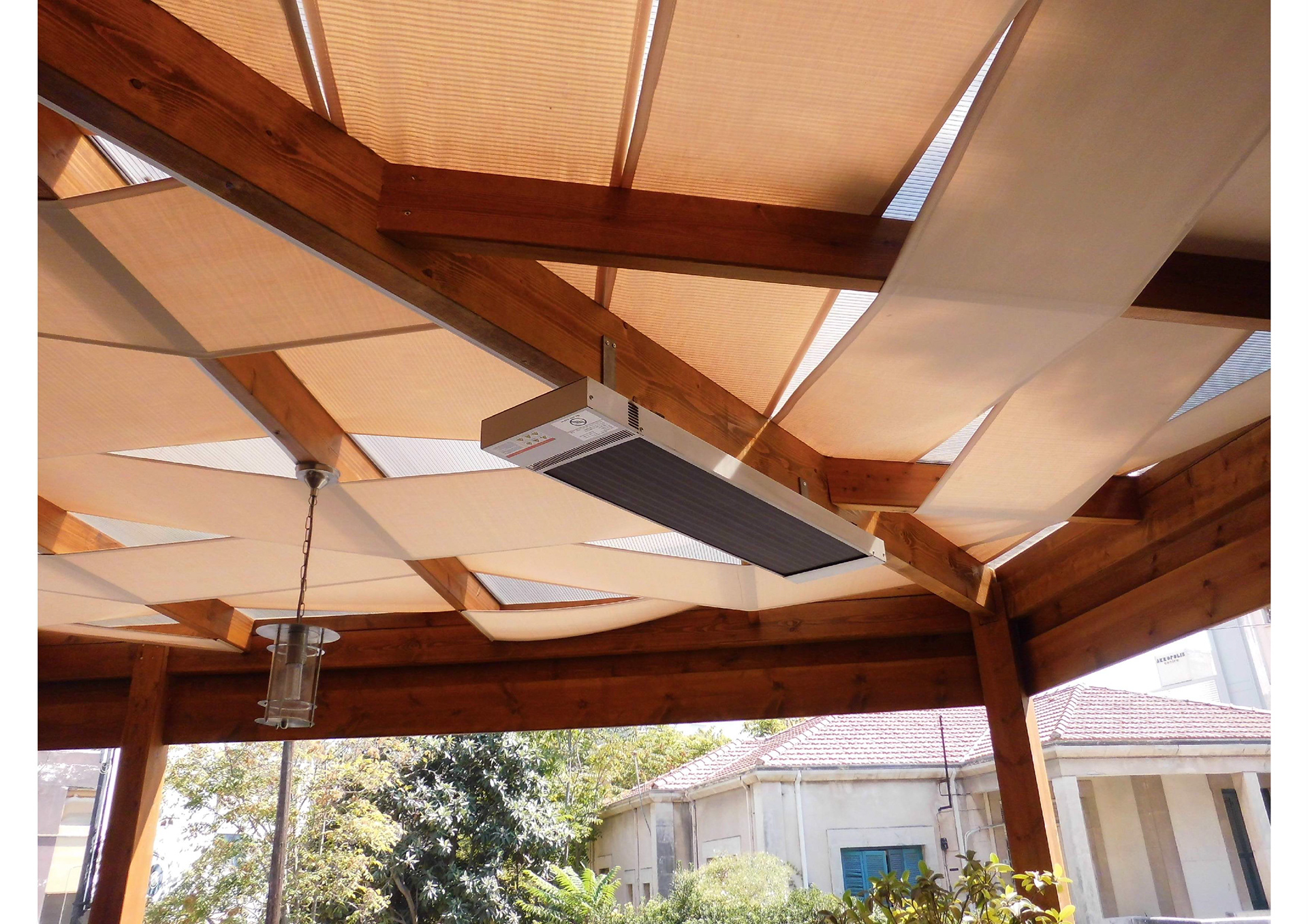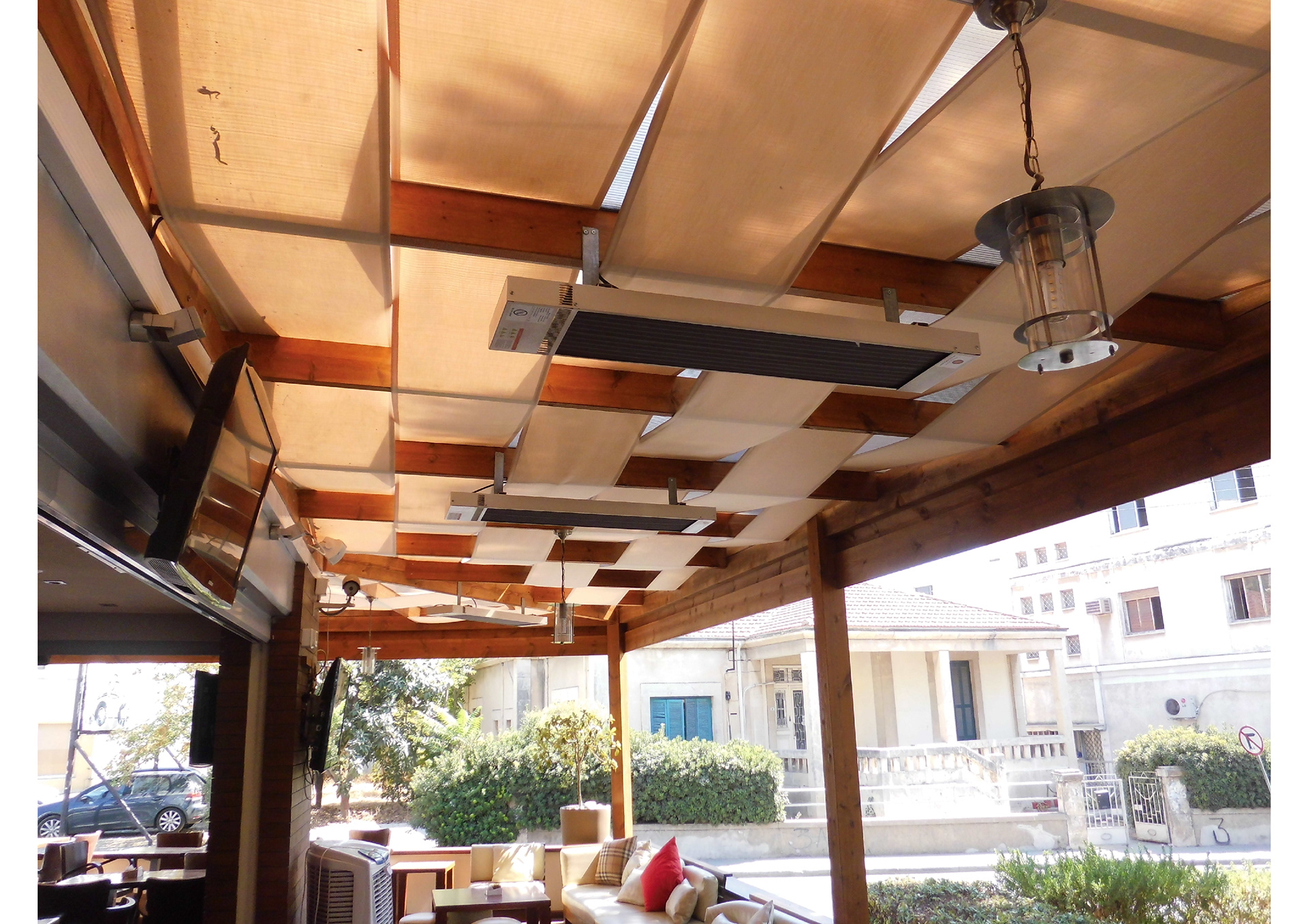 PROJECT: outdoor shaded area of cafeteria CUSTOMER: Requested a save energy solution for heating that will not emit any light SOLUTION: save energy radiant heaters installation