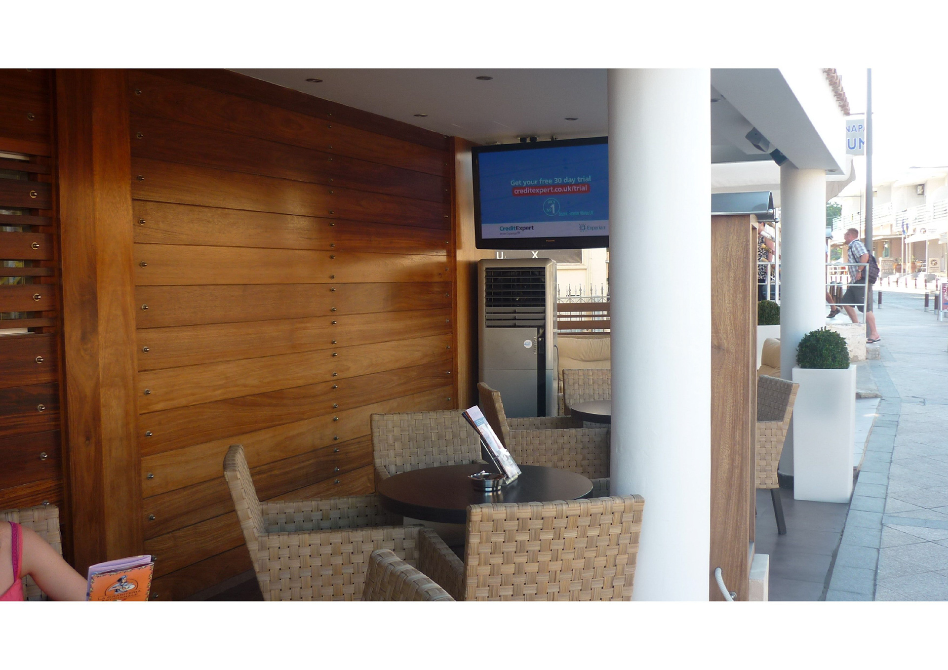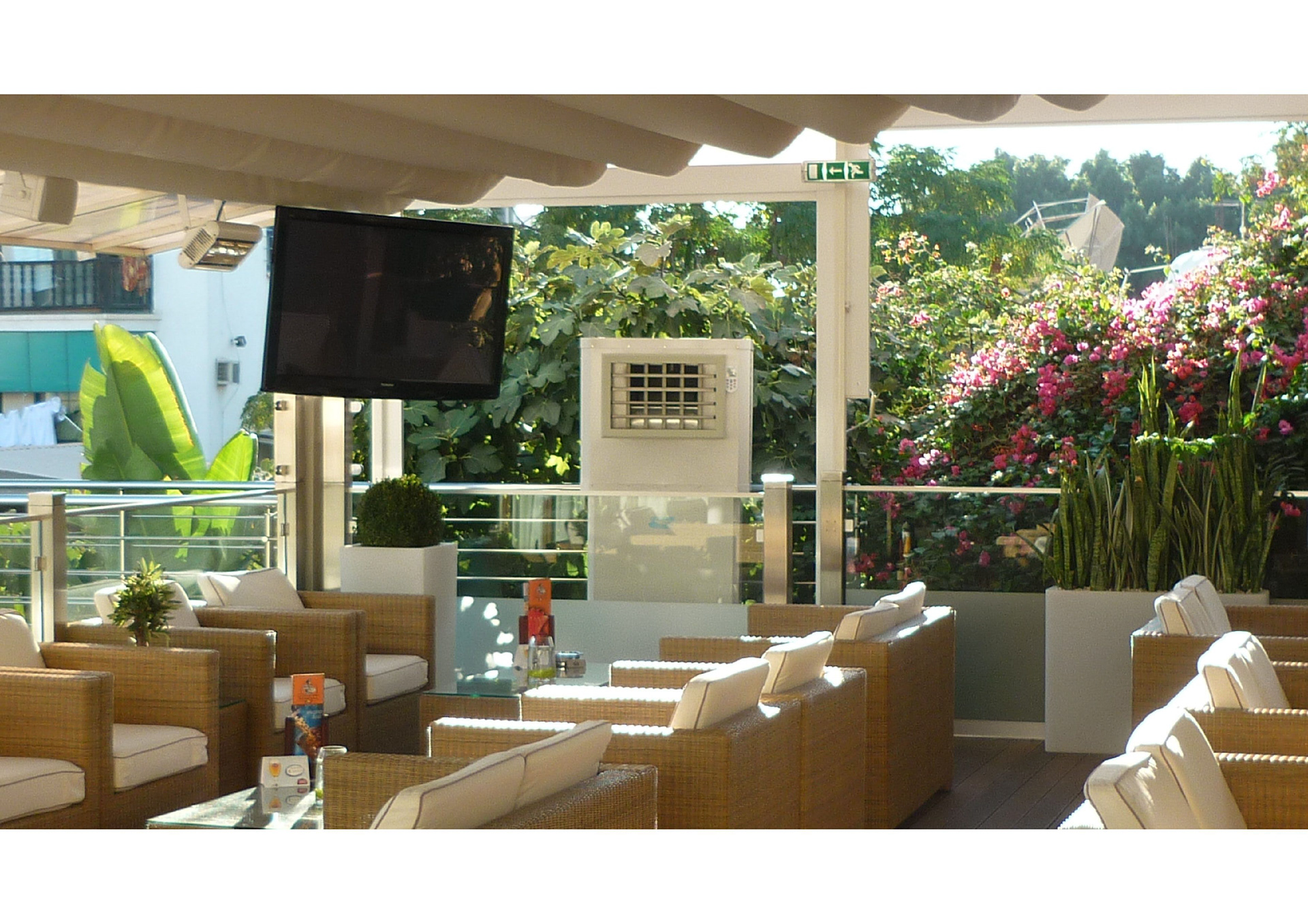 PROJECT: Sea side restaurant outdoor shaded areas for cooling CUSTOMER: Requested a save energy quality cooling for his outdoor areas because of high humidity during summer SOLUTION: Movable chiller 60,000 and 42,000 BTU with only 570 watt electricity consumption