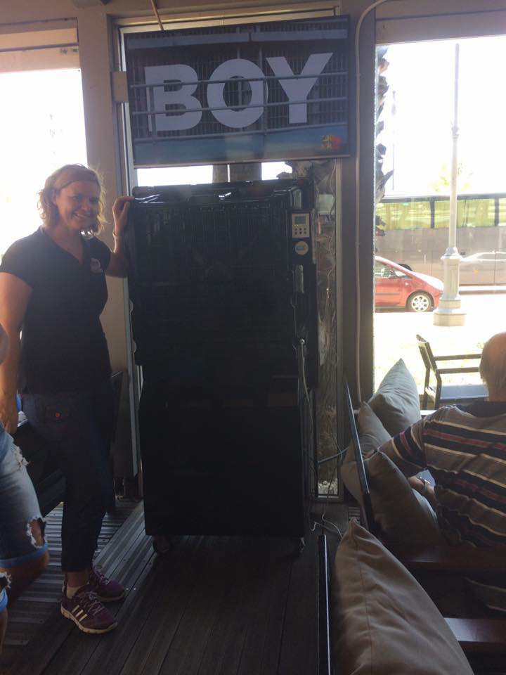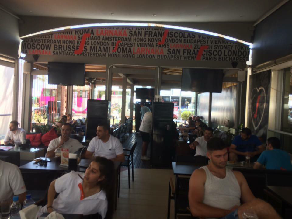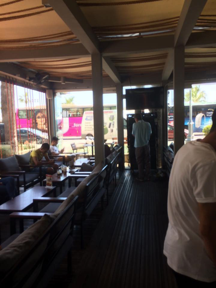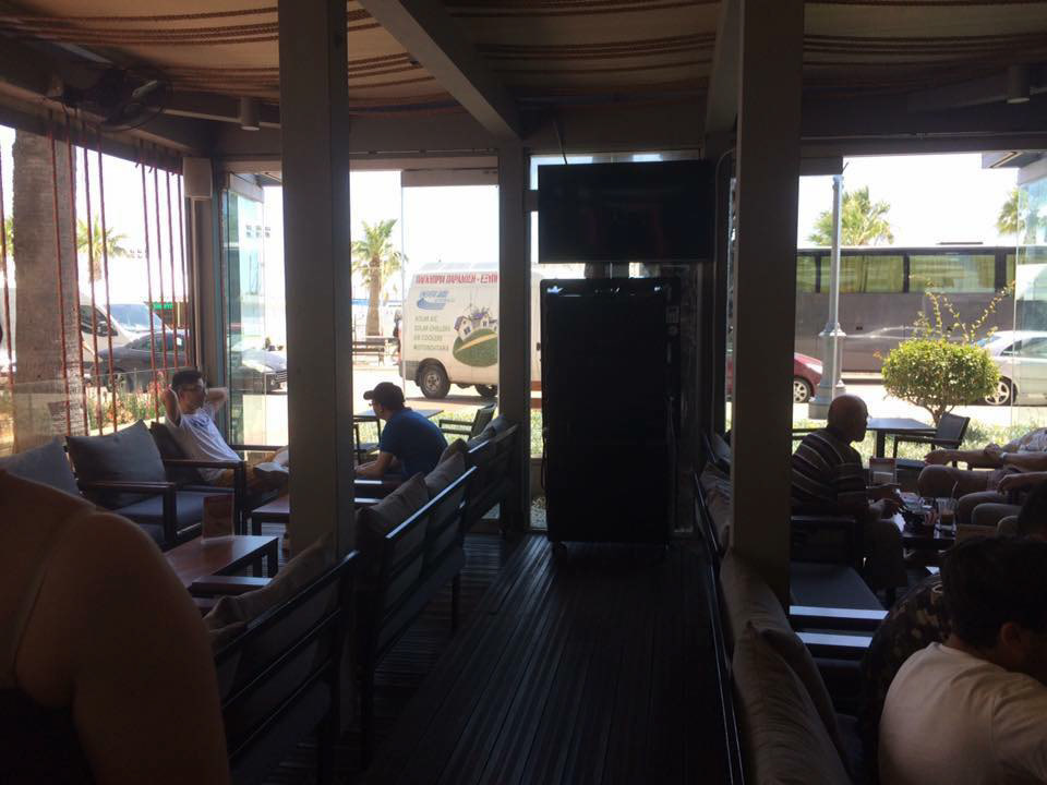 Segafredo sea side cafe/restaurant cooling installation. Quiet cooling airflow next to the customers sitting tables.