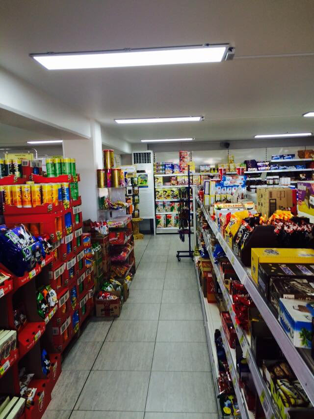 Project: Supermarket 500 SQM area two floors, high ceiling Customer: Requested a save energy air conditioning solution Solution: Installation of three solar floor standing air conditioners 42,000 BTU each for air stratification and aircurtains at the supermarket entrance.