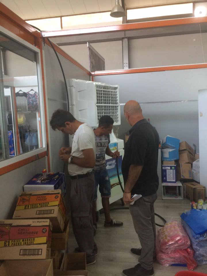 SUPERMARKET hangar type building spot cooling installation