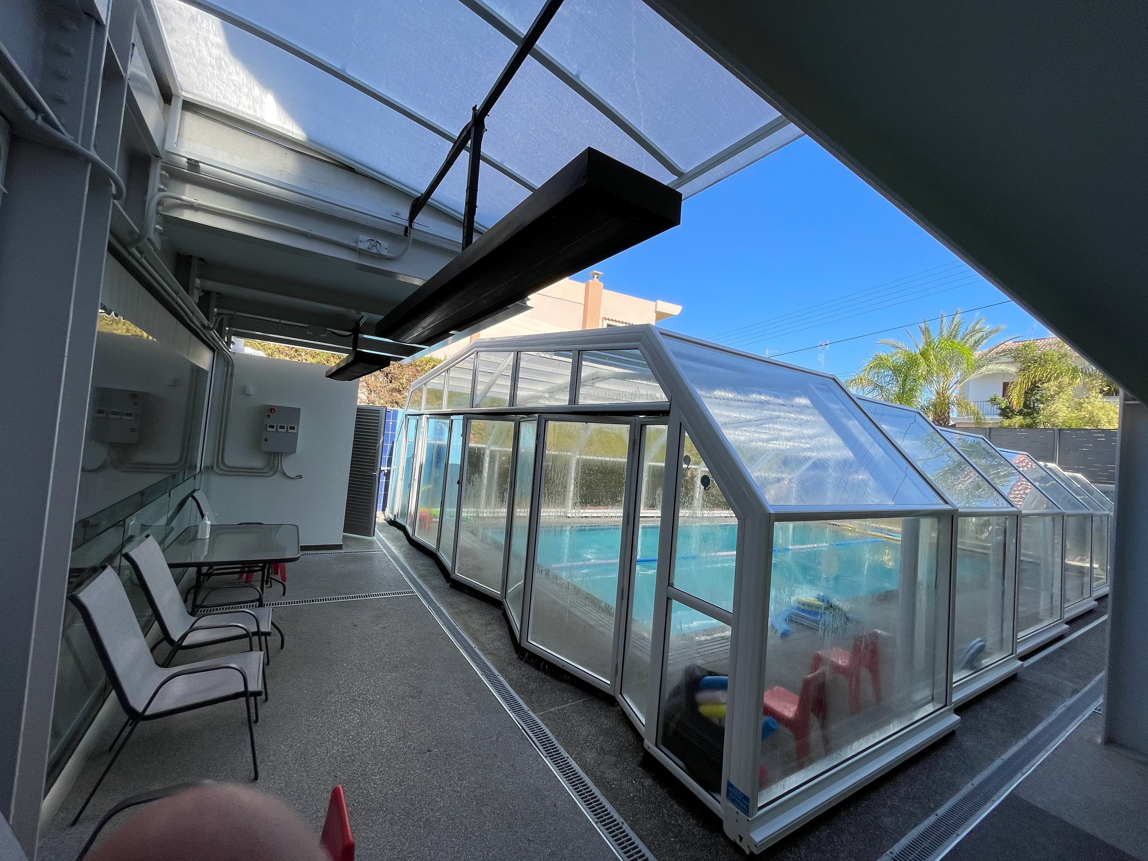 Swimming pool outdoors waiting area space heating