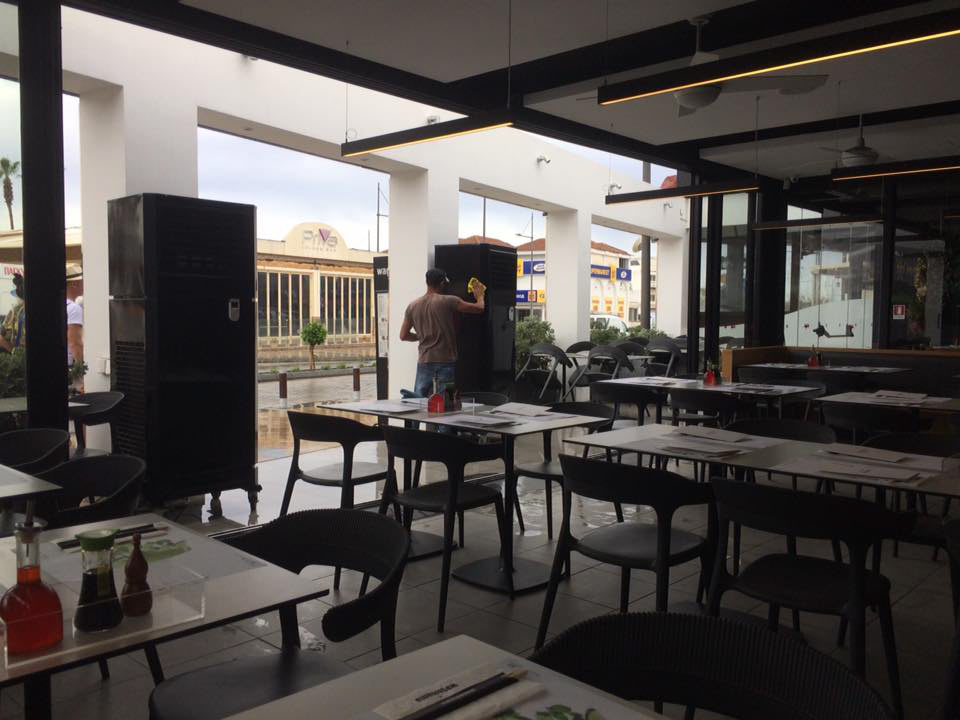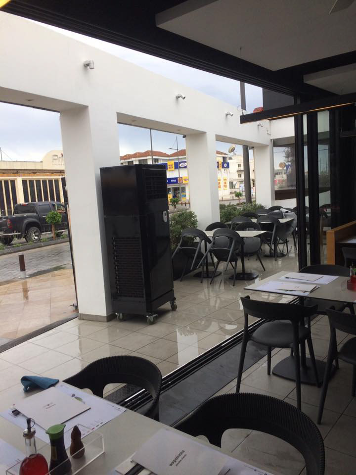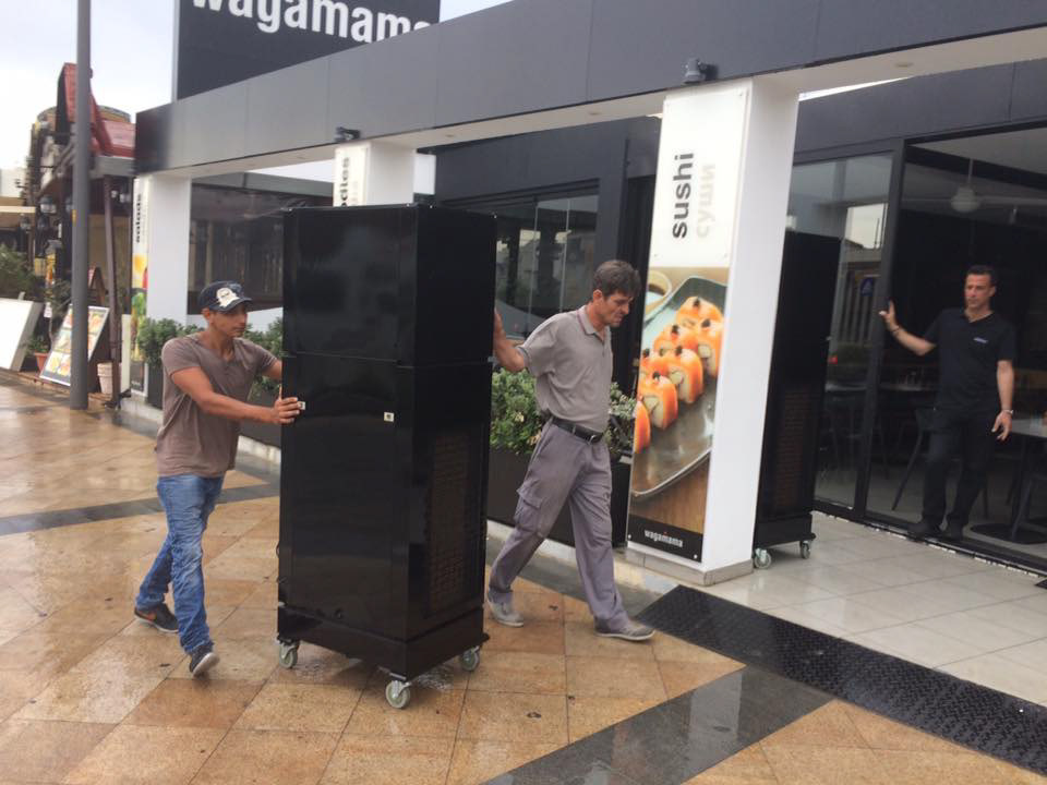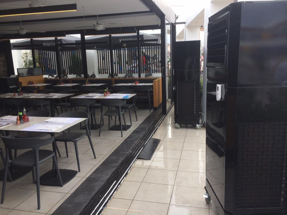 WAGAMAMA restaurant: outdoor dinning patio portable cooling installation
