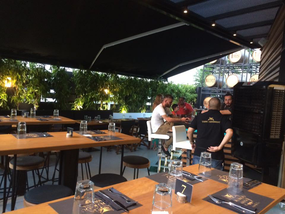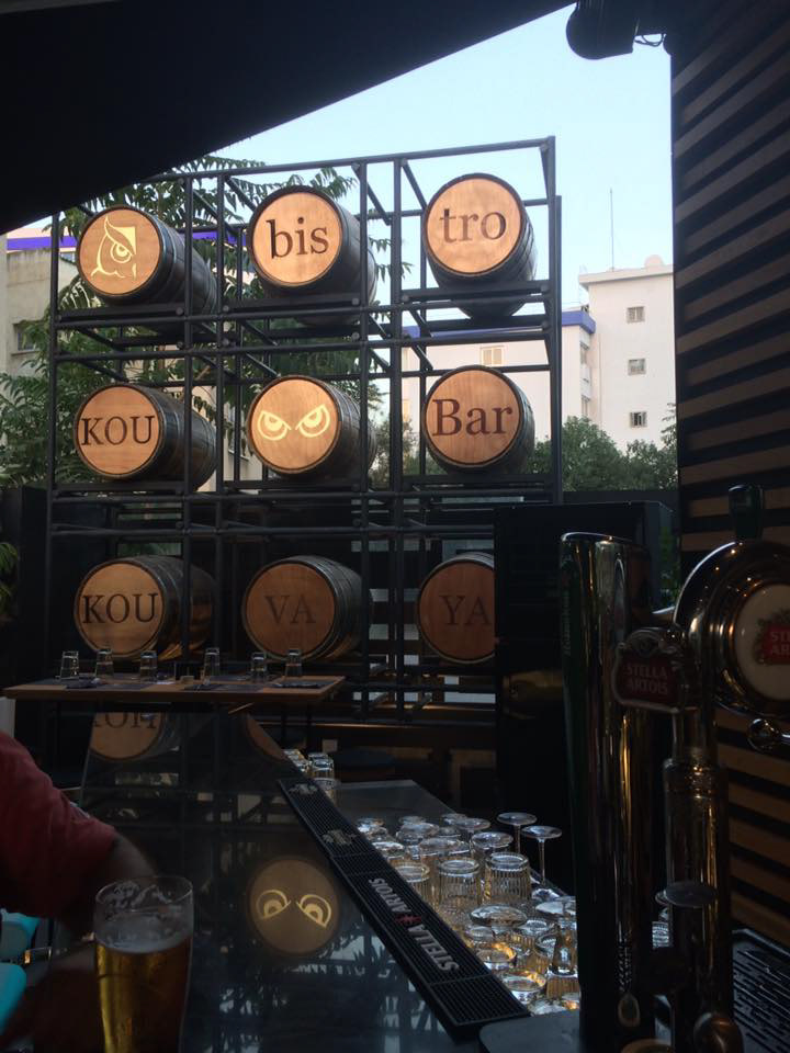 KOUKOUVAGIA WINE BAR BISTRO outdoor sitting patio cooling installation