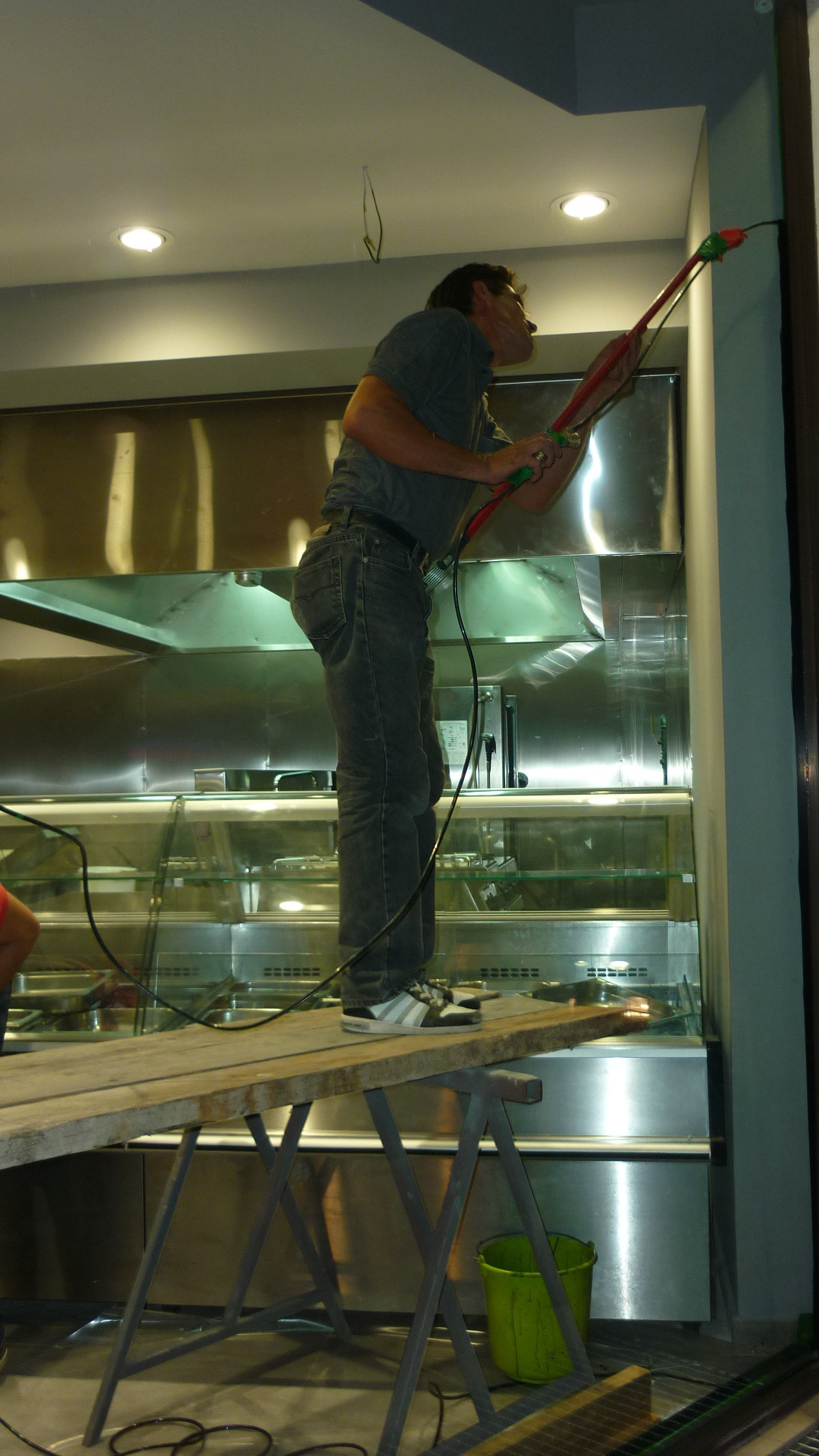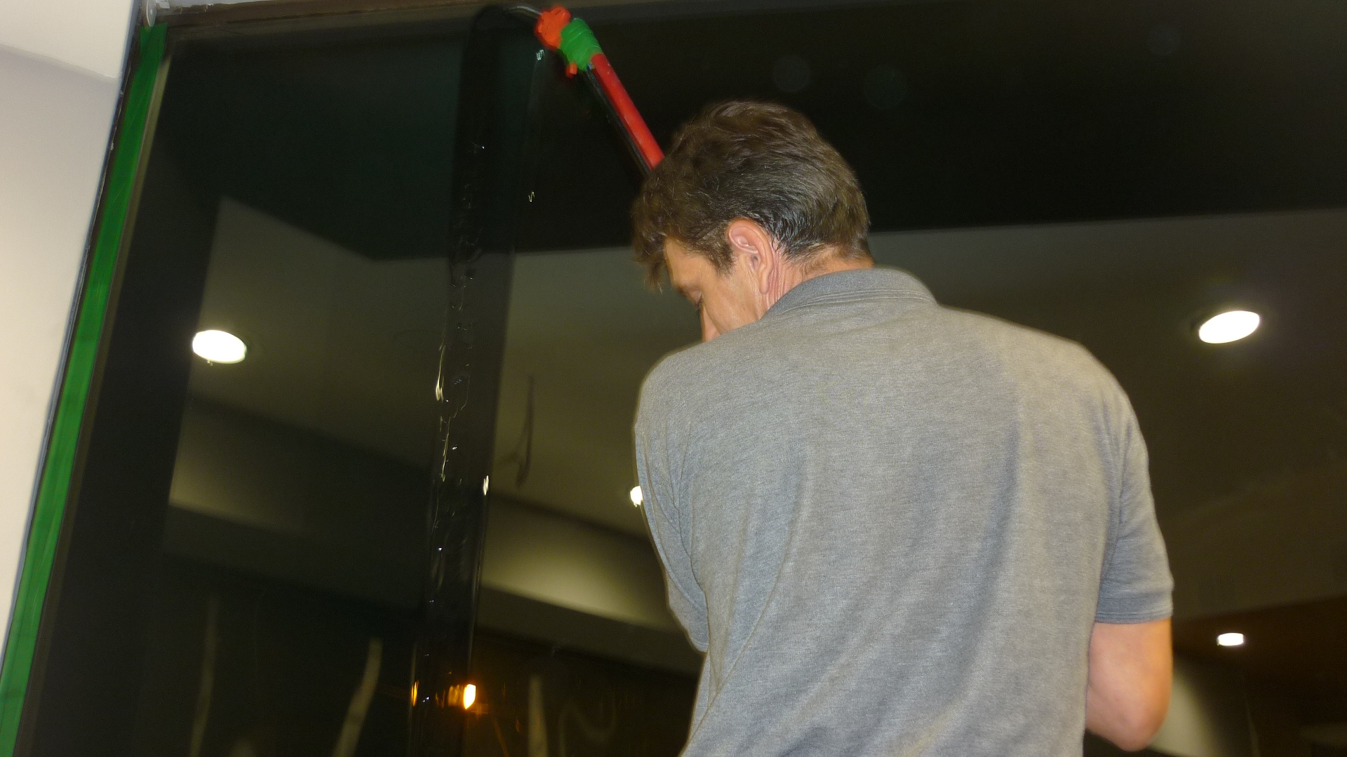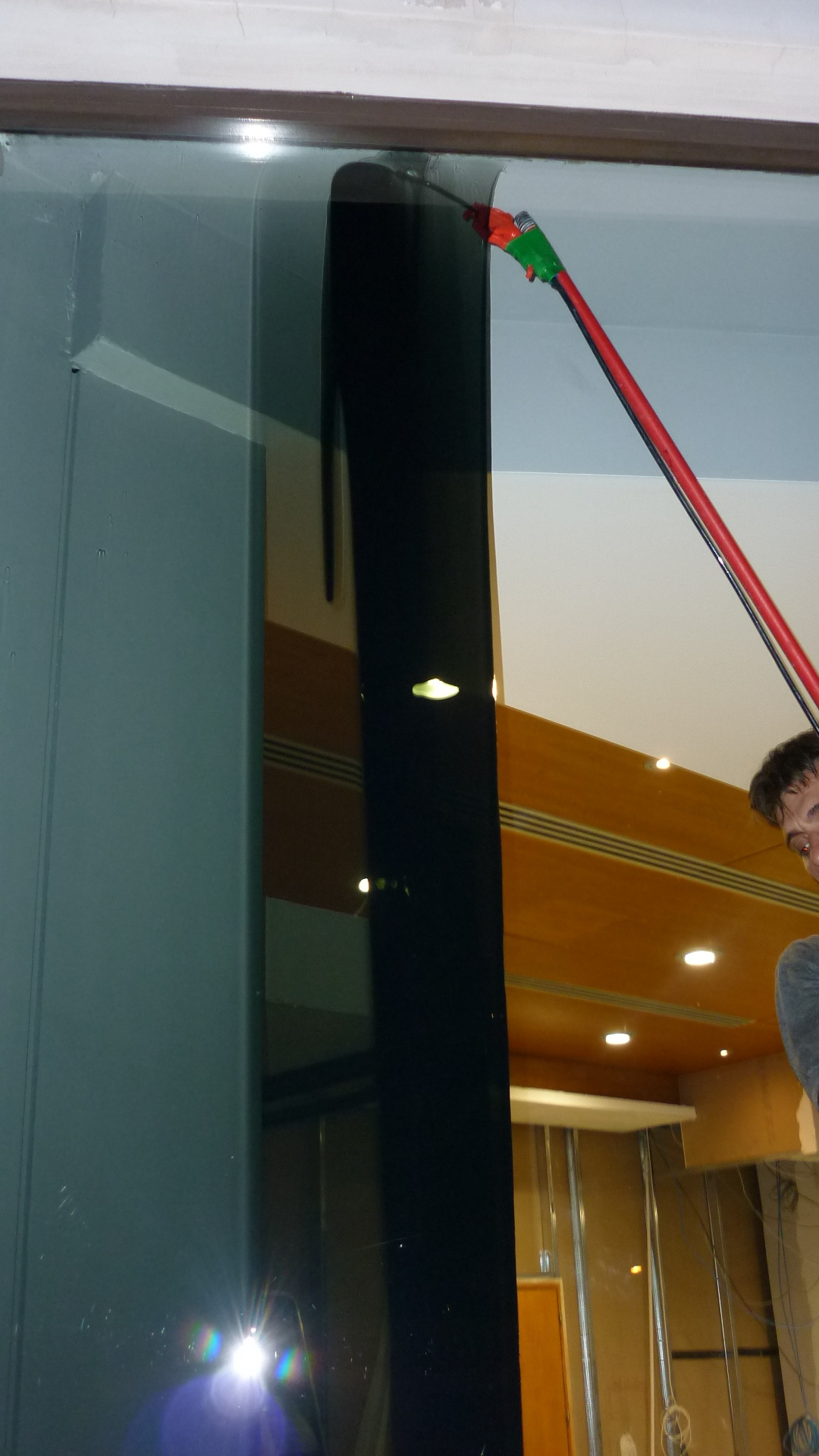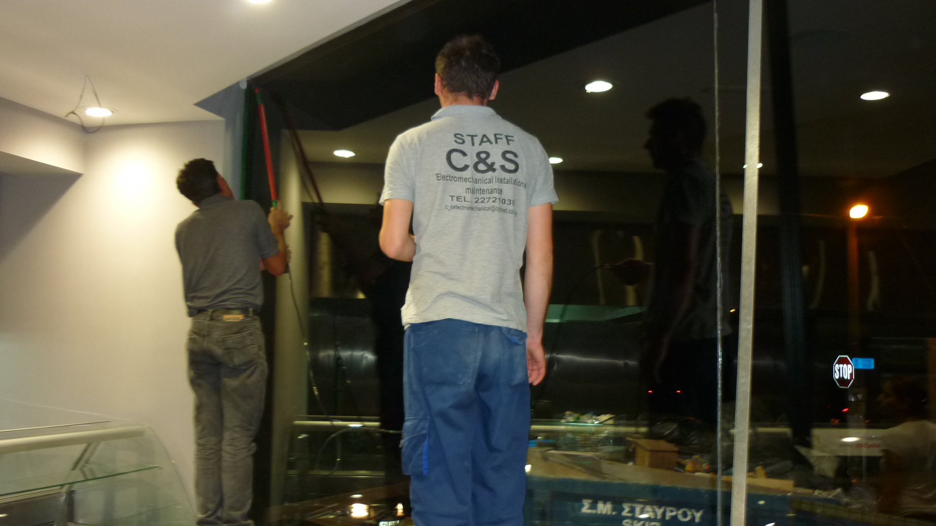PROJECT: Zorbas bakery at tseiou ave. window glass surfaces CUSTOMER: Requested a transparent heat bloack coating to be applied on his hop window fronts SOLUTION: Transparent heat insulation coating